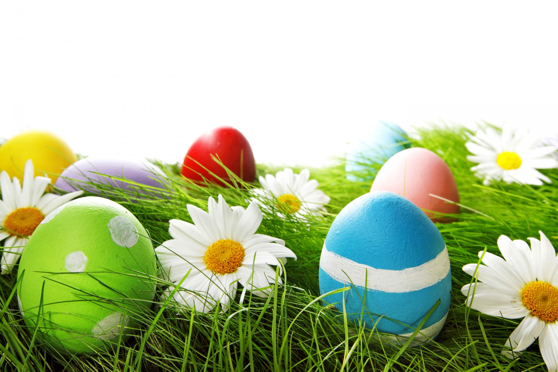 Oeufs de pâques dans l'herbe dans la prairie avec des margueritesOeufs de Pâques dans l'herbe dans la Prairie avec des marguerites