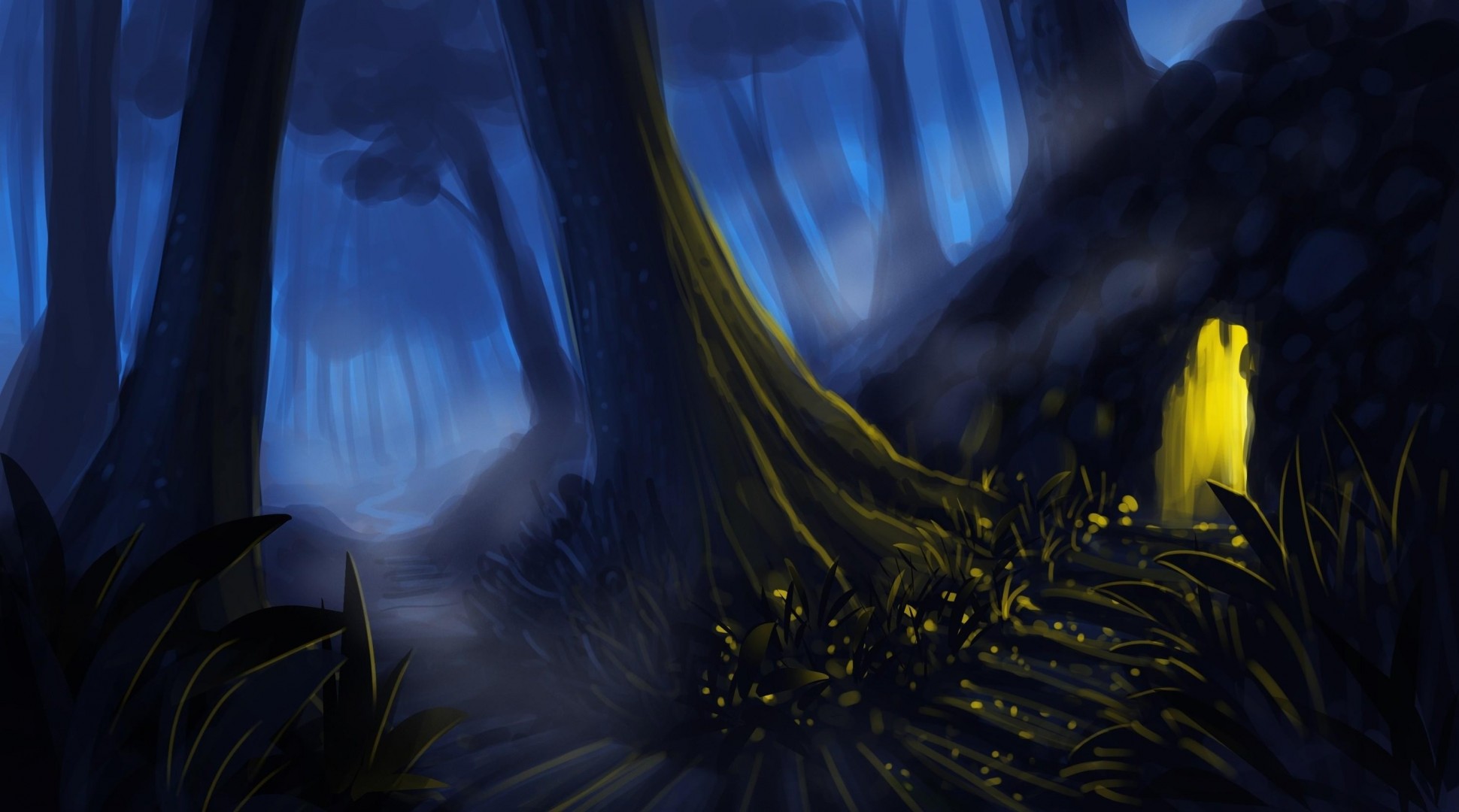 Dans la forêt dans l'arbre il y a une entrée et il y a une lumière