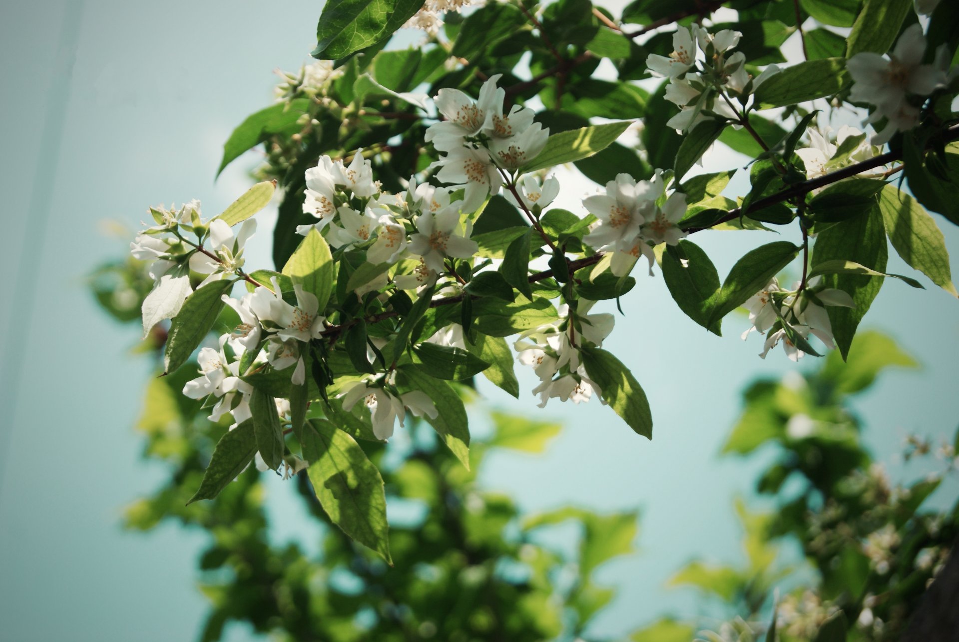 Fleurs de jasmin avec des pétales blancs sur l'arbre
