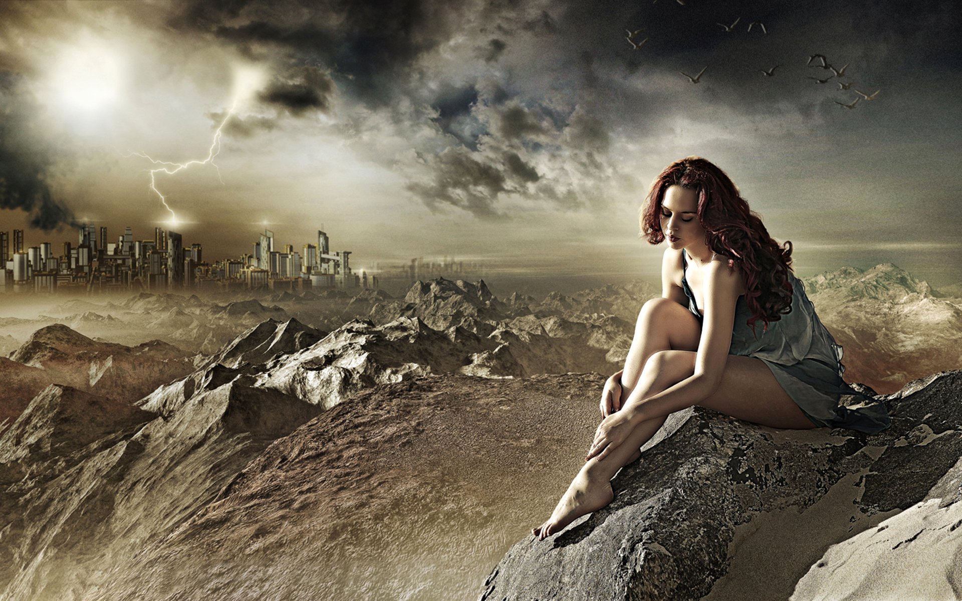 La jeune fille aux cheveux blancs sur fond de cielLa jeune fille aux cheveux blancs sur fond de ciel