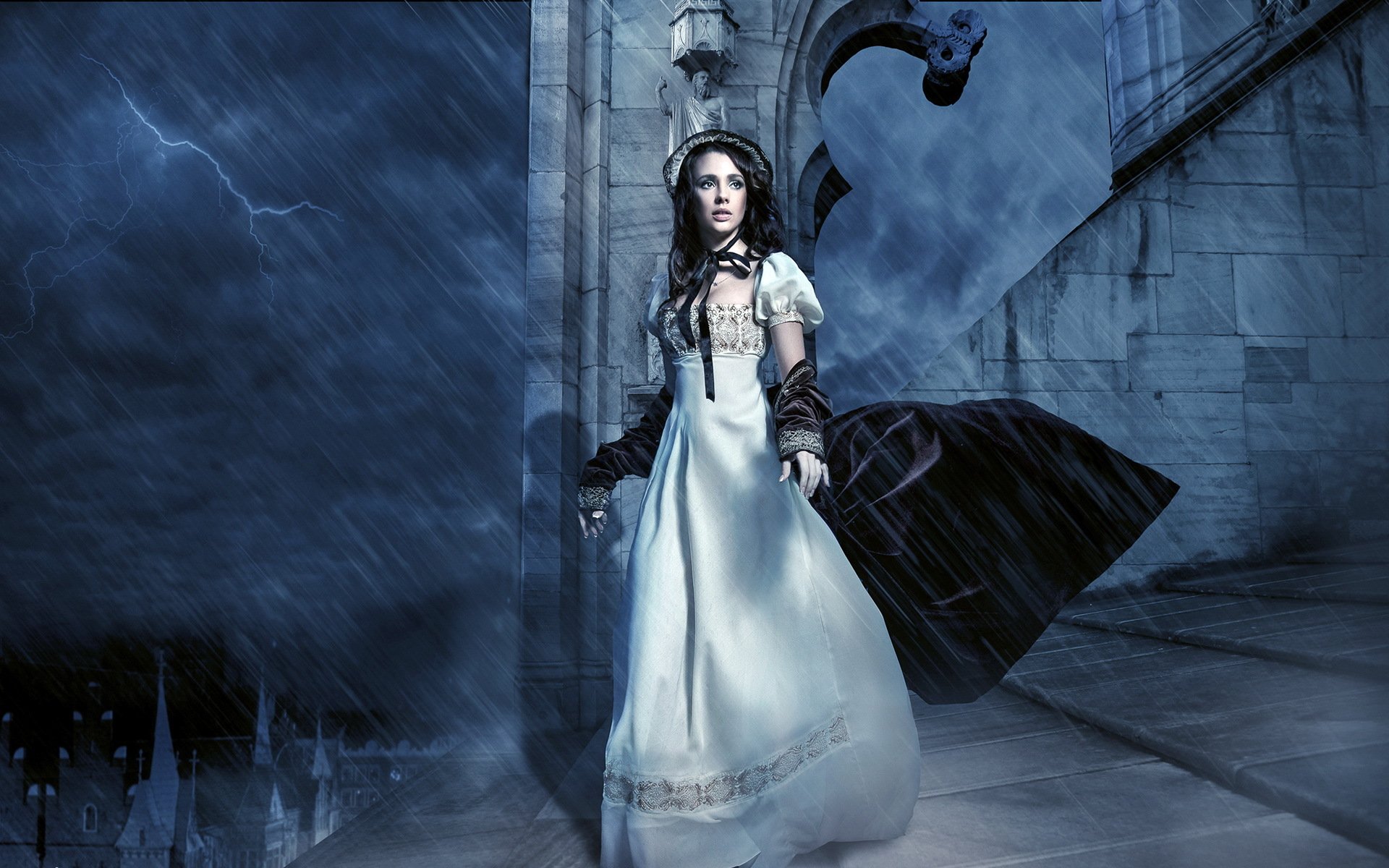 La jeune fille en rouge, près de la cheminée avec de la rose et des bougiesLa jeune fille en rouge, près de la cheminée avec de la rose et des bougies