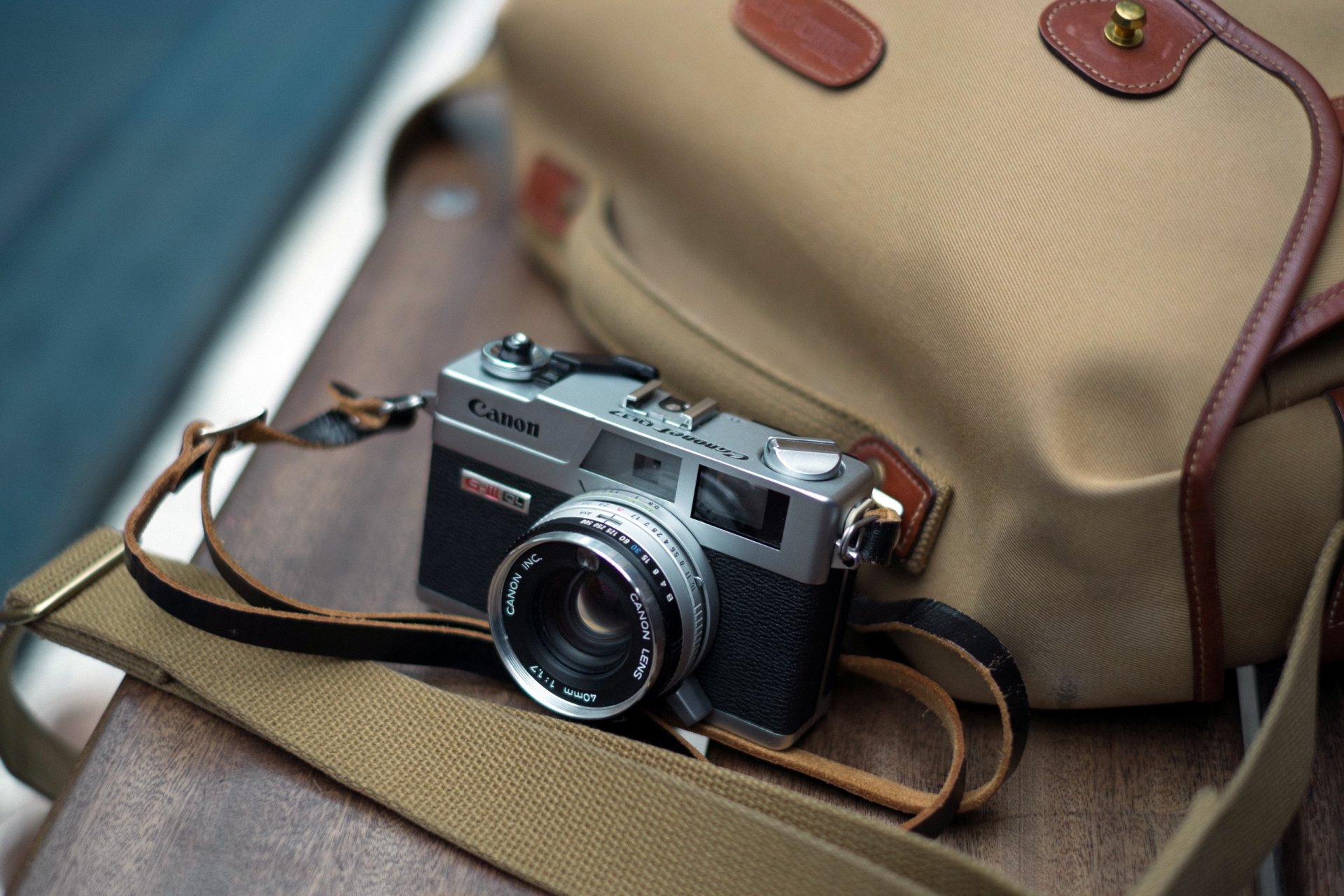 Appareil photo reflex pour la prise de vue se trouve sur le sac beigeAppareil photo reflex pour la prise de vue se trouve sur le sac beige