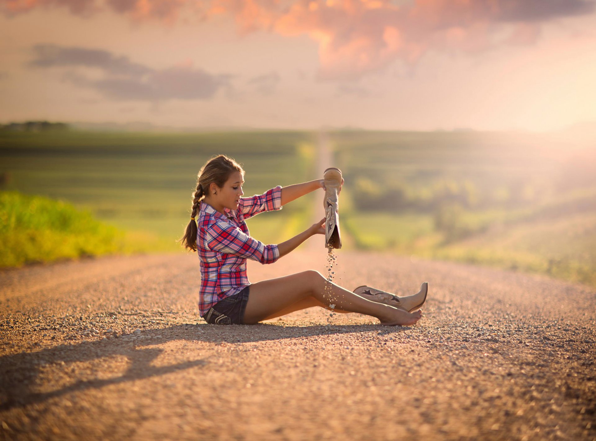 Fille avec une lanterne sur la route dans le brouillardFille avec une lanterne sur la route dans le brouillard