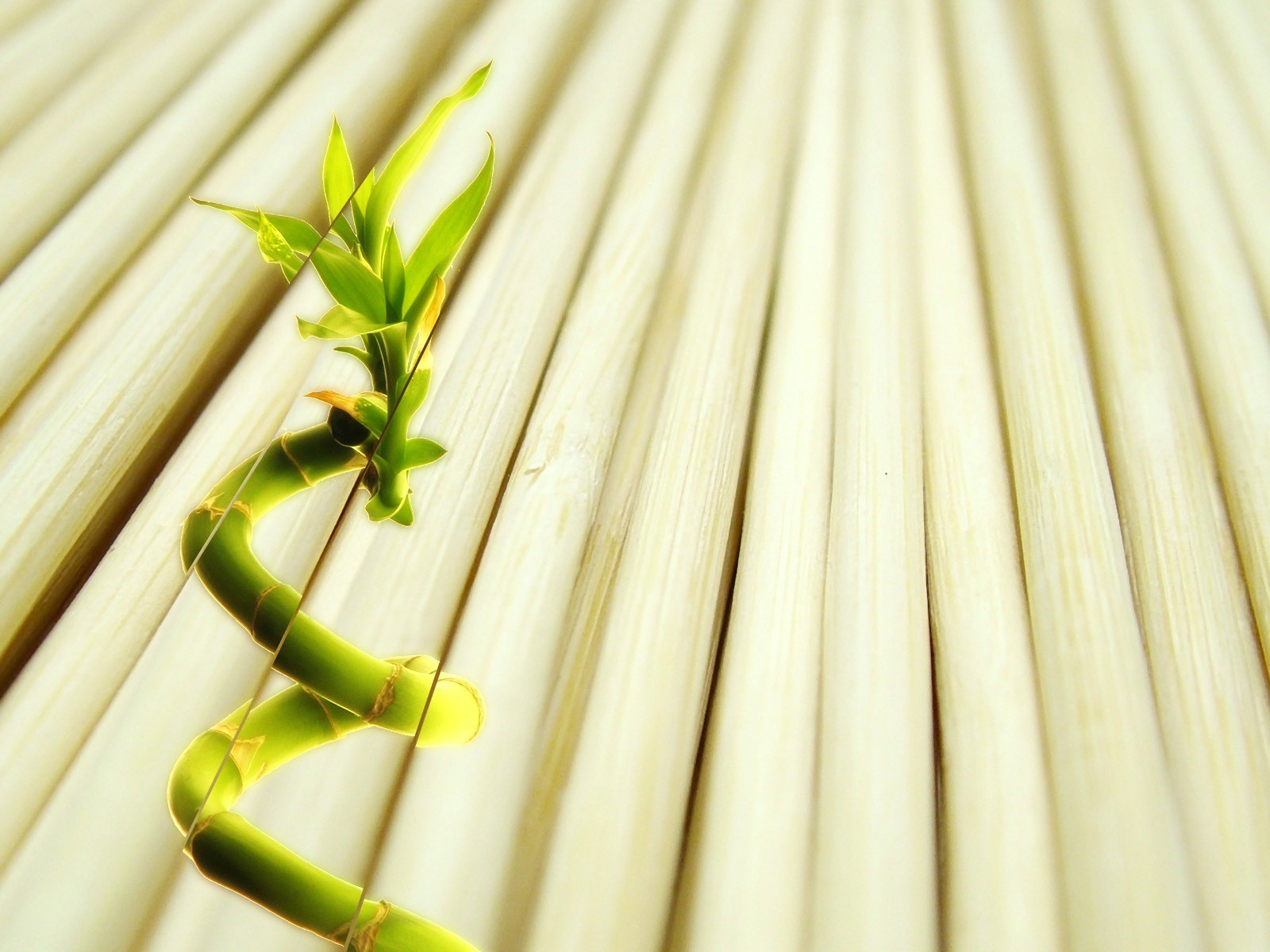 Le bambou a grandi parmi le plancher blanc