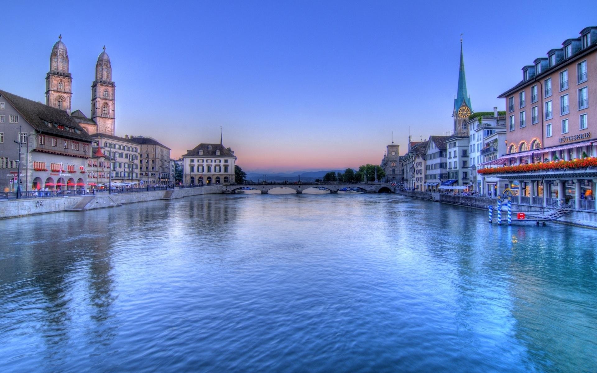 Maisons arc-en-ciel sur le chemin du pont en descendant la rivièreMaisons arc-en-ciel sur le chemin du pont en descendant la rivière