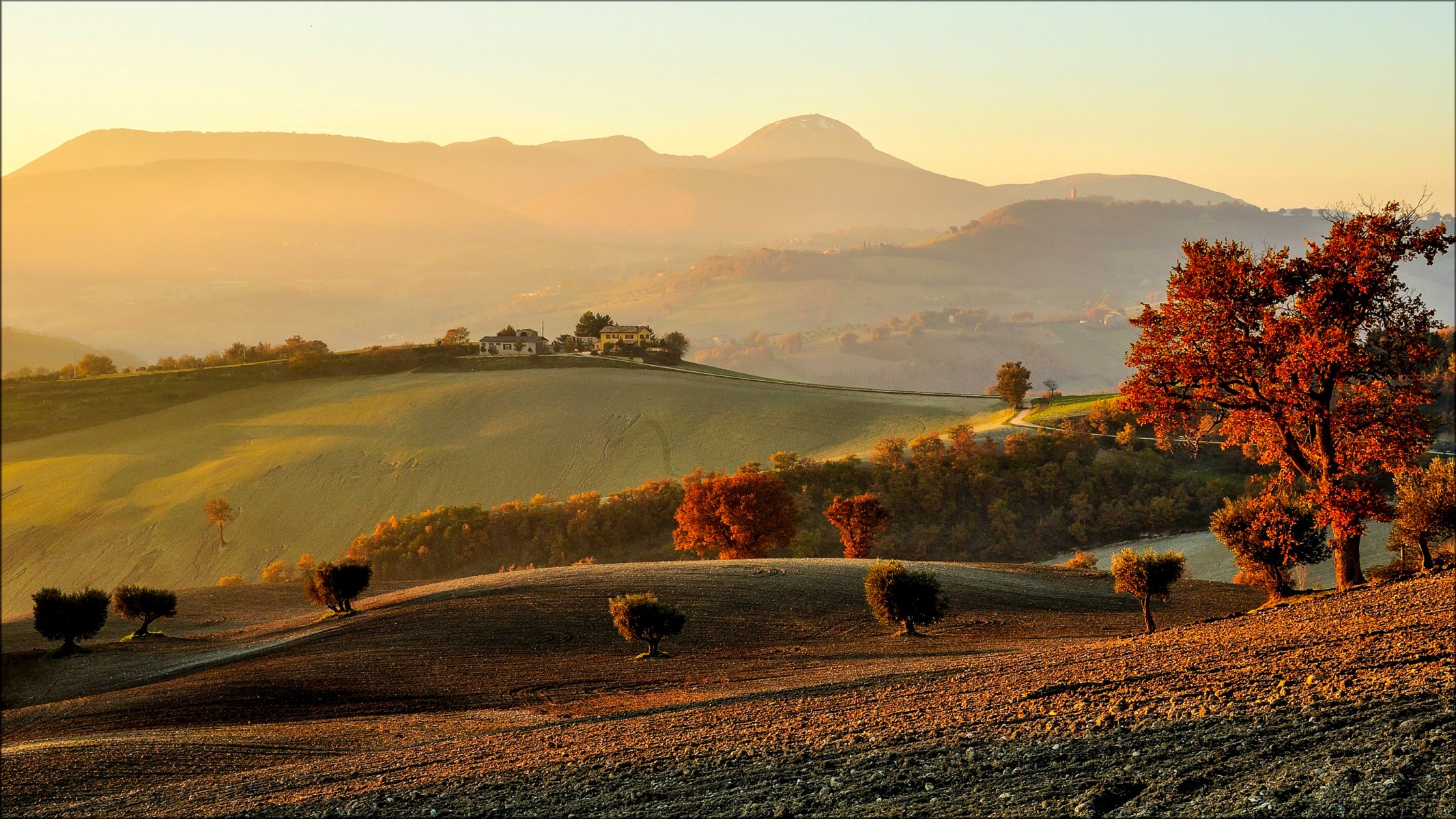 Dans le brouillard du matin, on voit un village endormiDans le brouillard du matin, on voit un village endormi