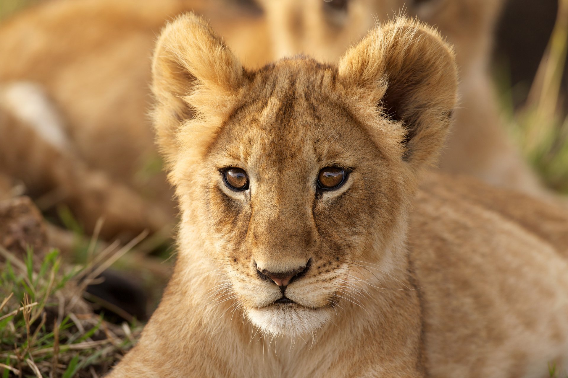 Le regard intelligent d'une jeune lionne