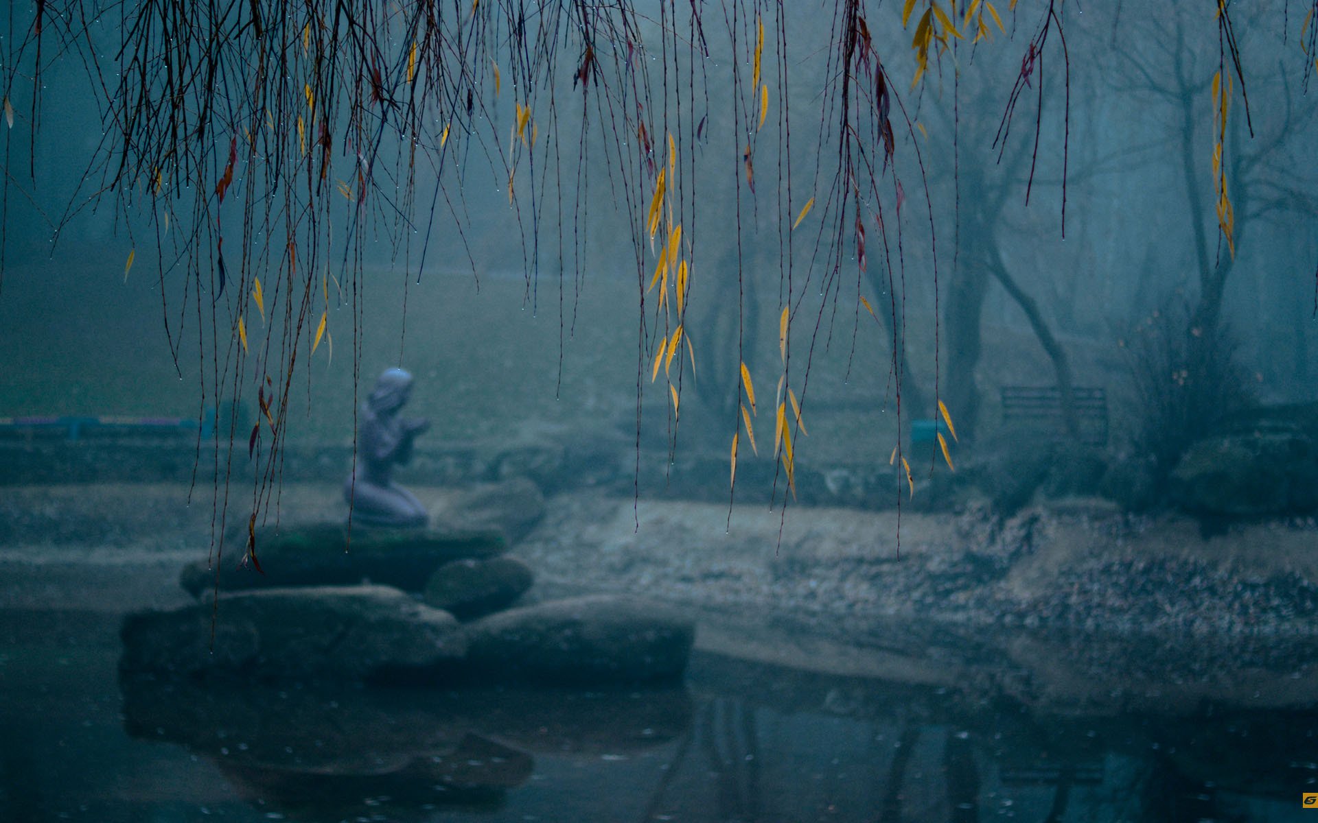 Un chien triste s'emmêle dans le gtrland du nouvel anUn chien triste s'emmêle dans le gtrland du nouvel an