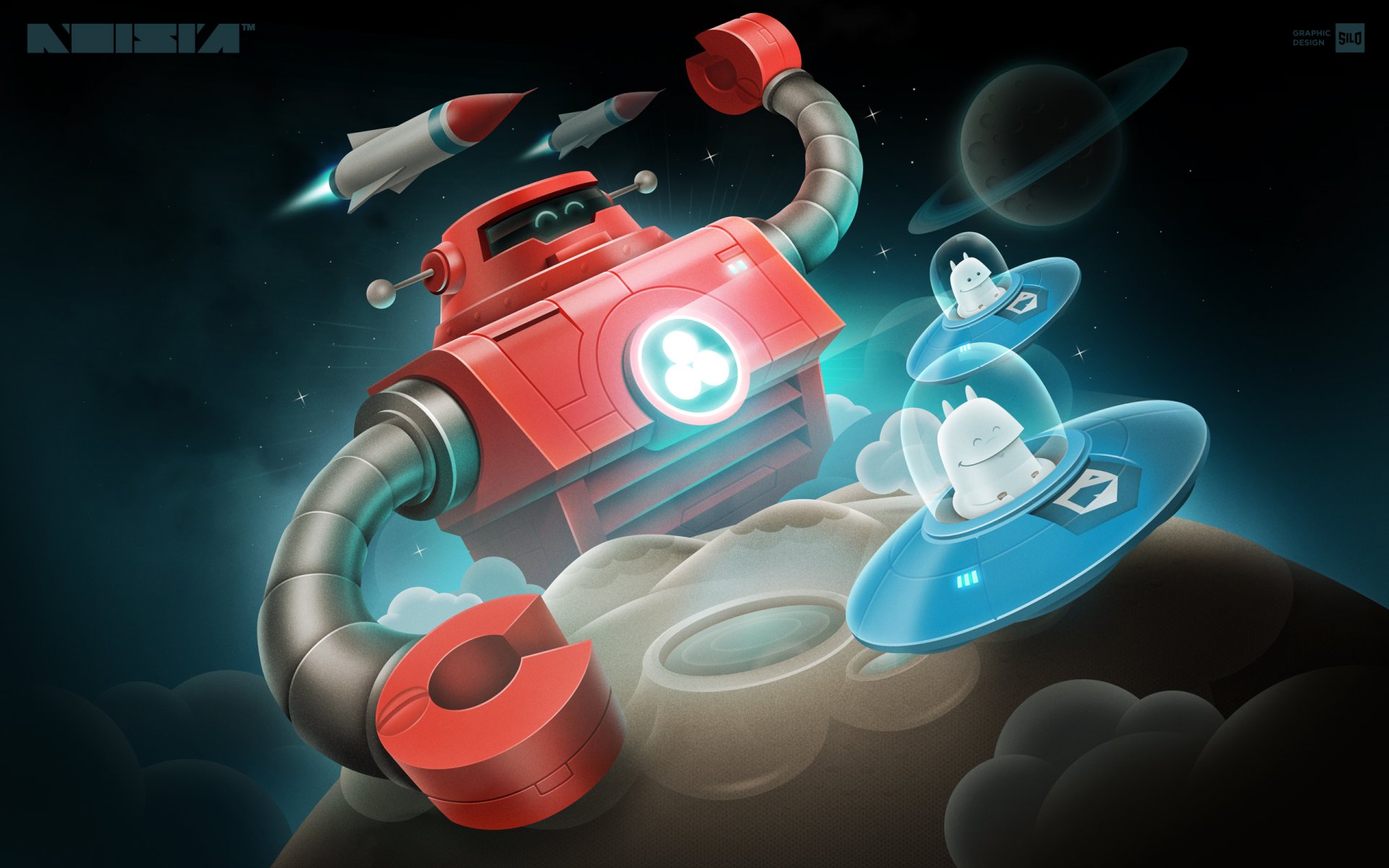 Robot rouge passé voler des missiles