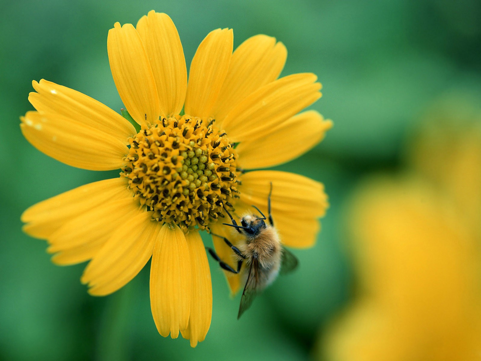 Collecte de pollen sur une fleur jaune. abeille laborieuseCollecte de pollen sur une fleur jaune. Abeille laborieuse