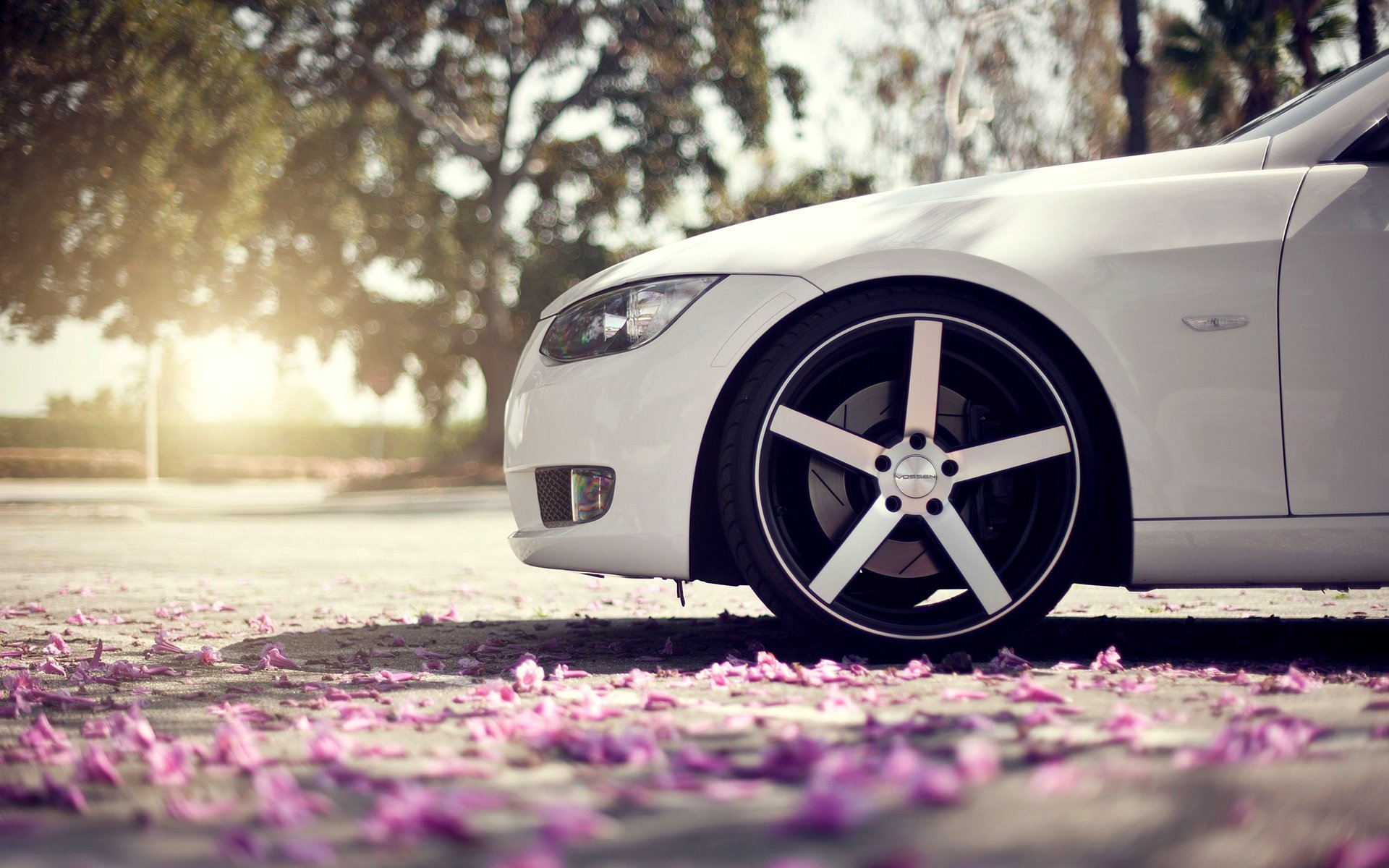 Voiture bmw sur la route sur fond de paysage pittoresque