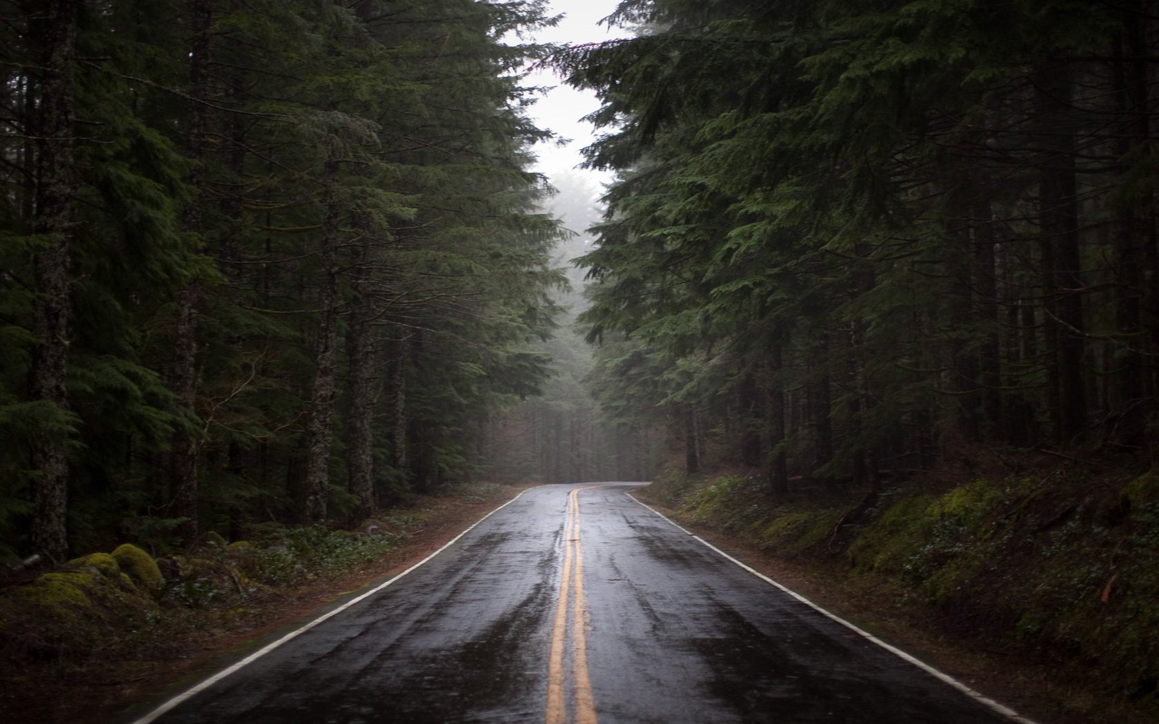 Route de montagne de nuit éclairée par la lumière orange des lanternesRoute de montagne de nuit éclairée par la lumière orange des lanternes