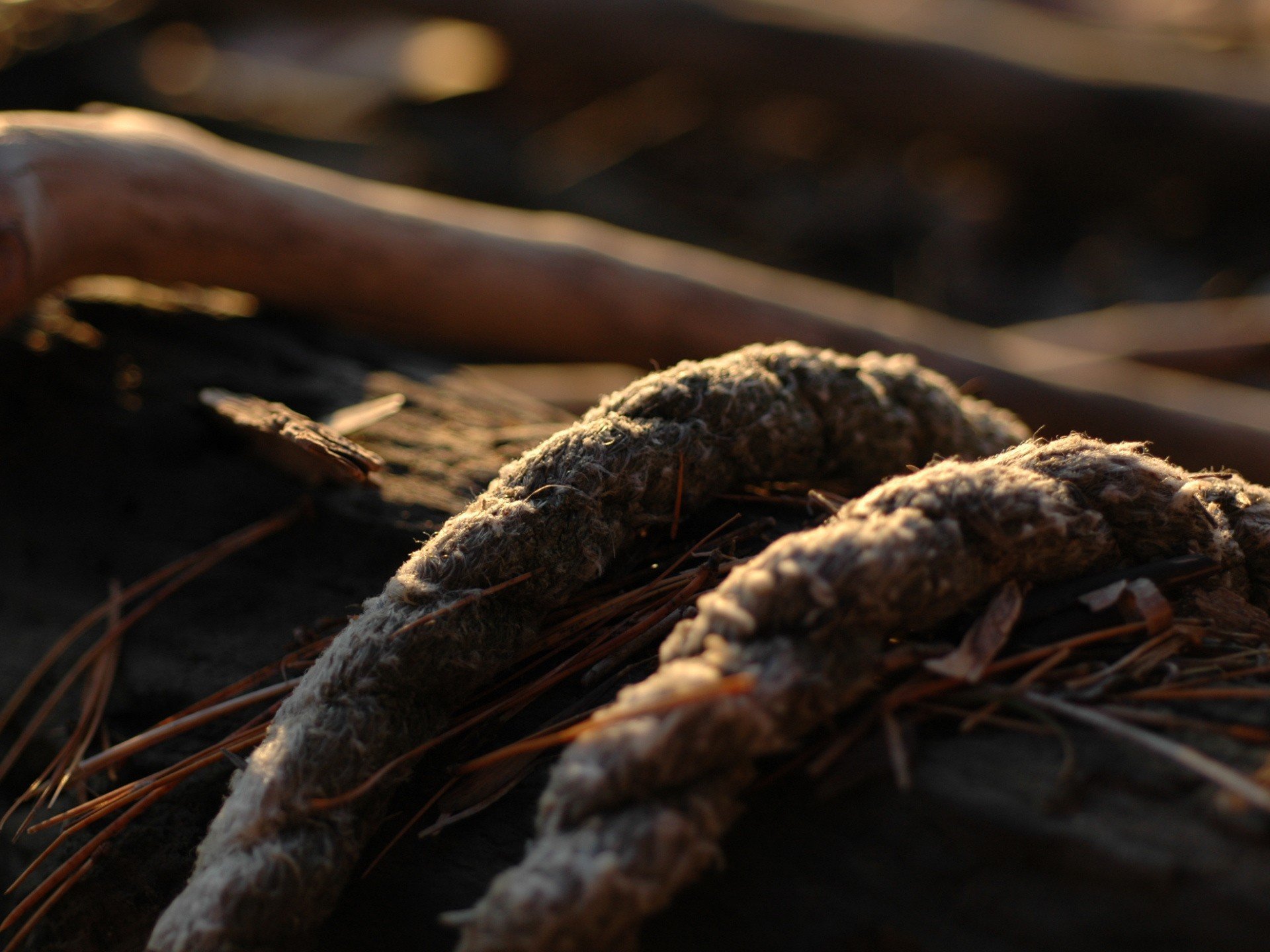Cordes entre l'herbe et les branches au soleil