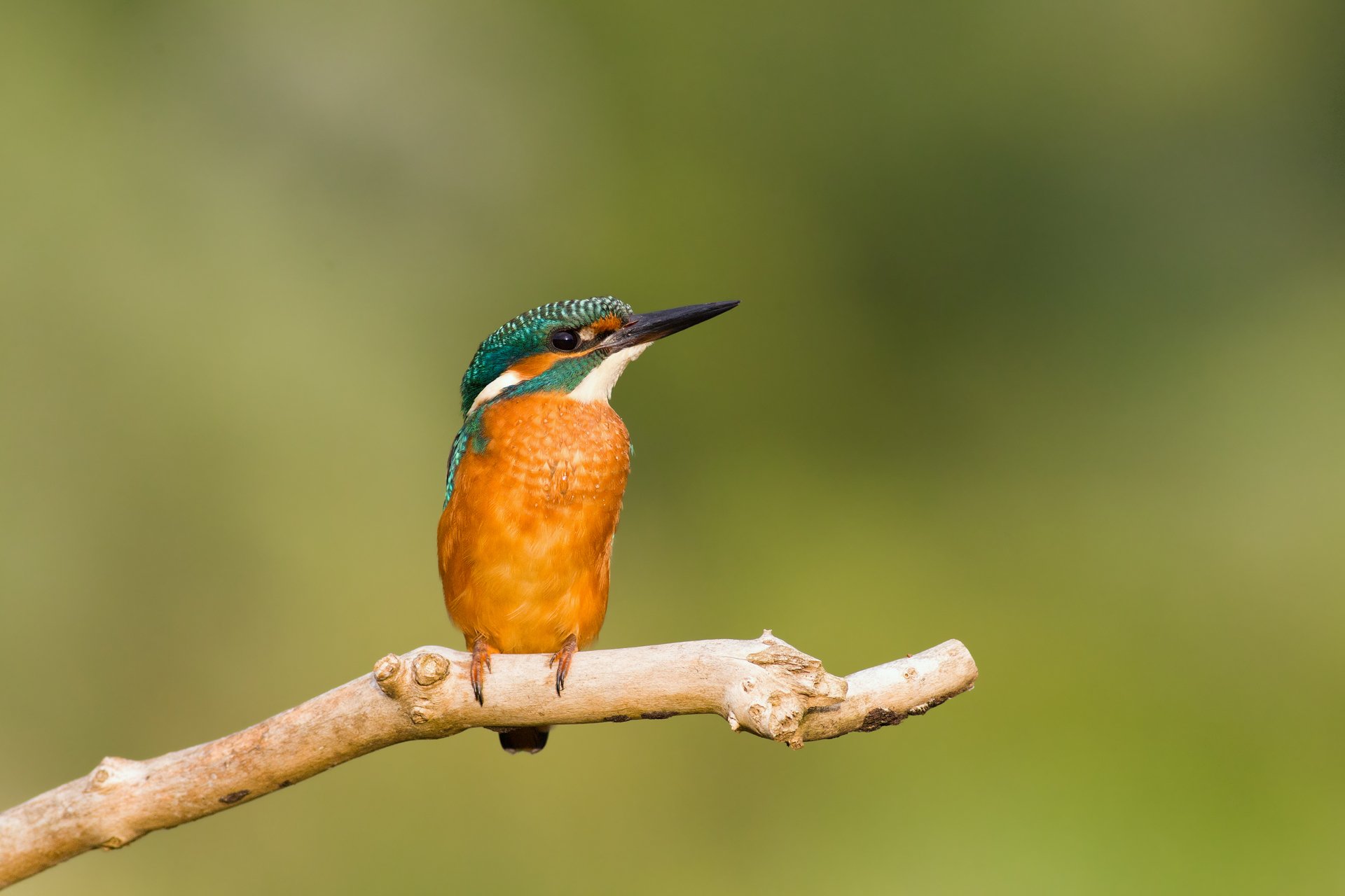 Martin-pêcheur émeraude sur une branche avec des feuilles vertesMartin-pêcheur émeraude sur une branche avec des feuilles vertes