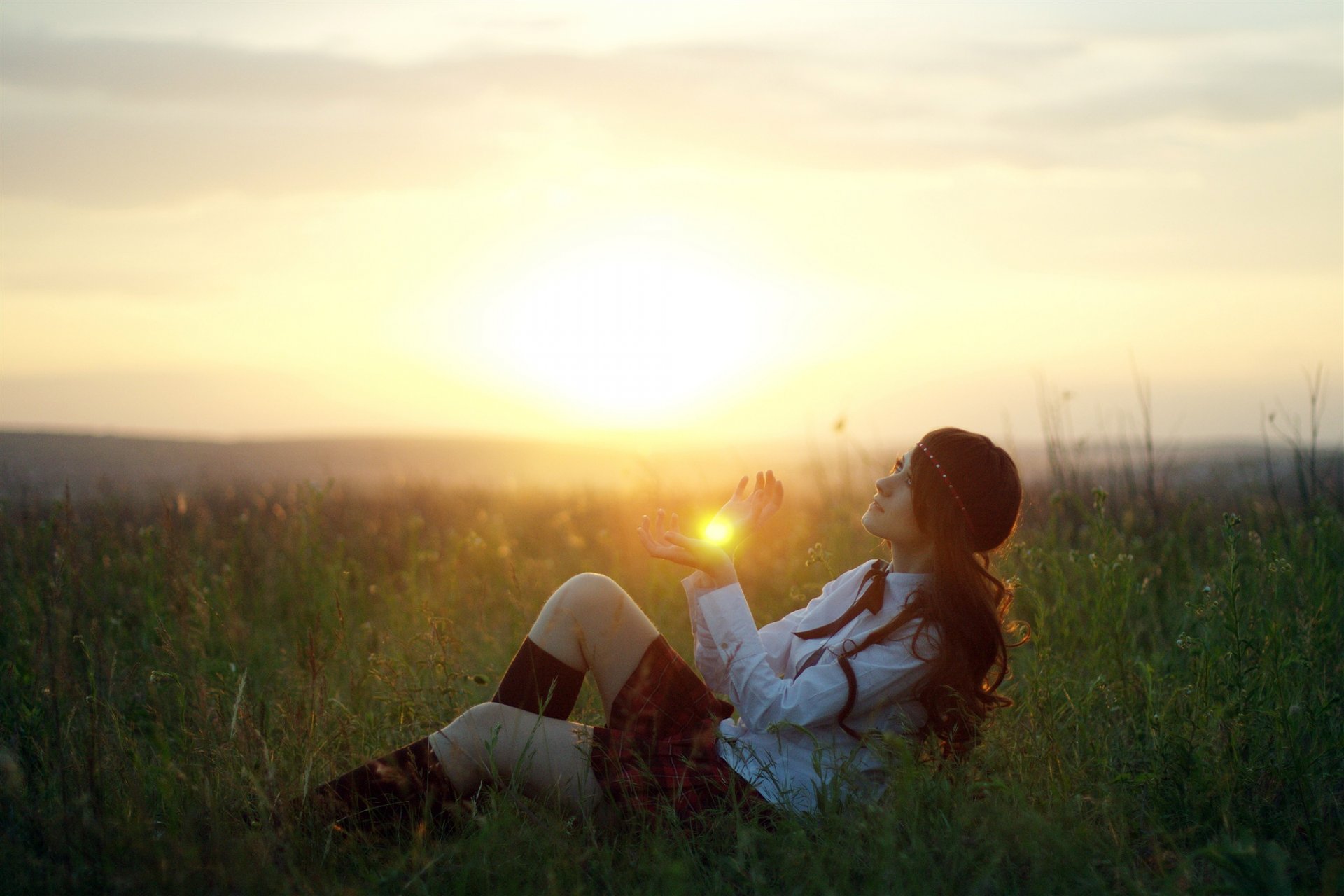 Fille en jupe jaune sur fond de voiture de sport rouge