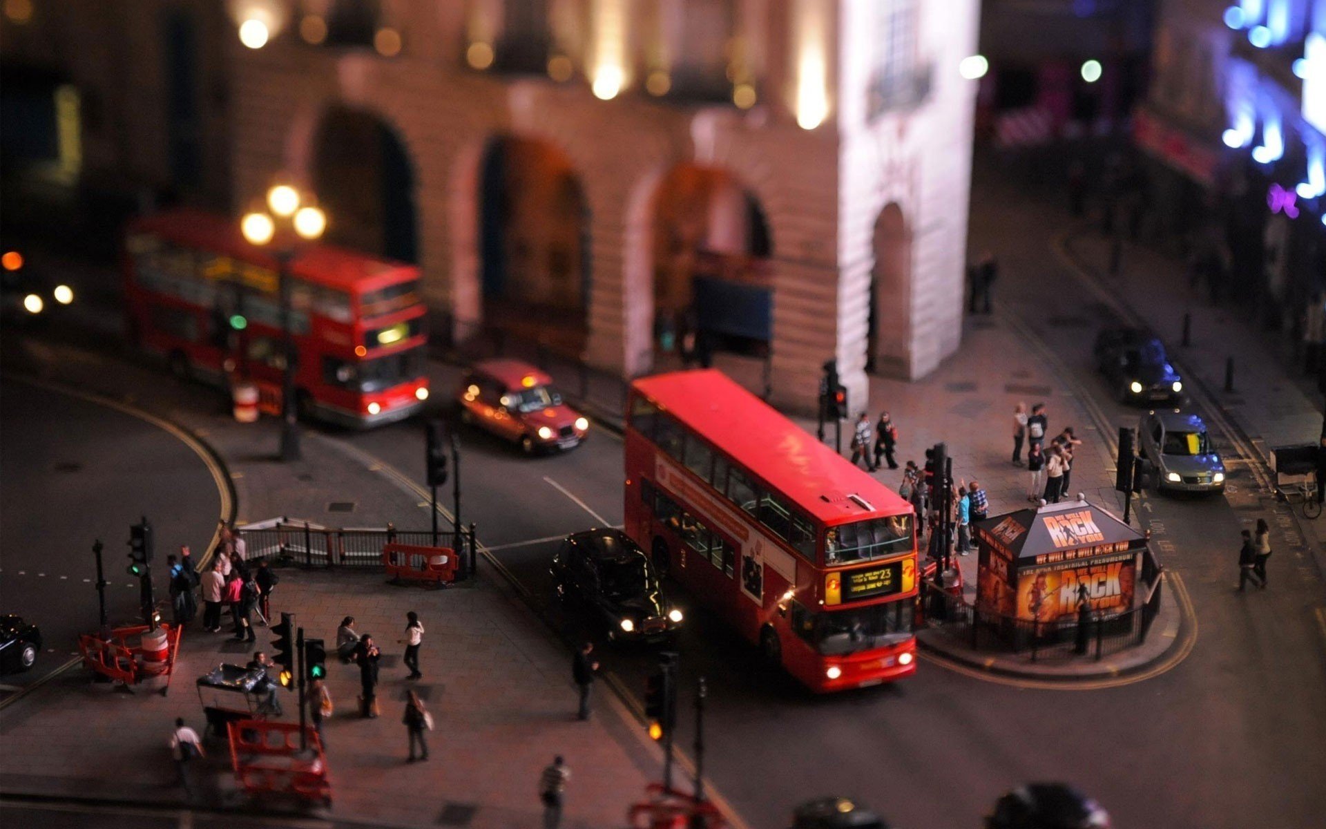 Cinéma miniature avec des voitures jouets et un ordinateur portable