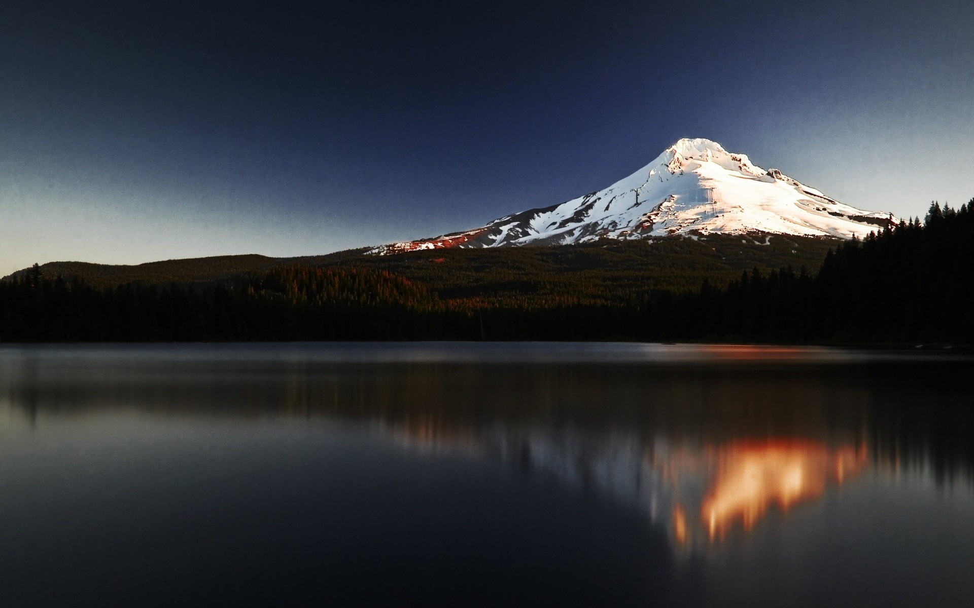 Sommet enneigé au bord du lac