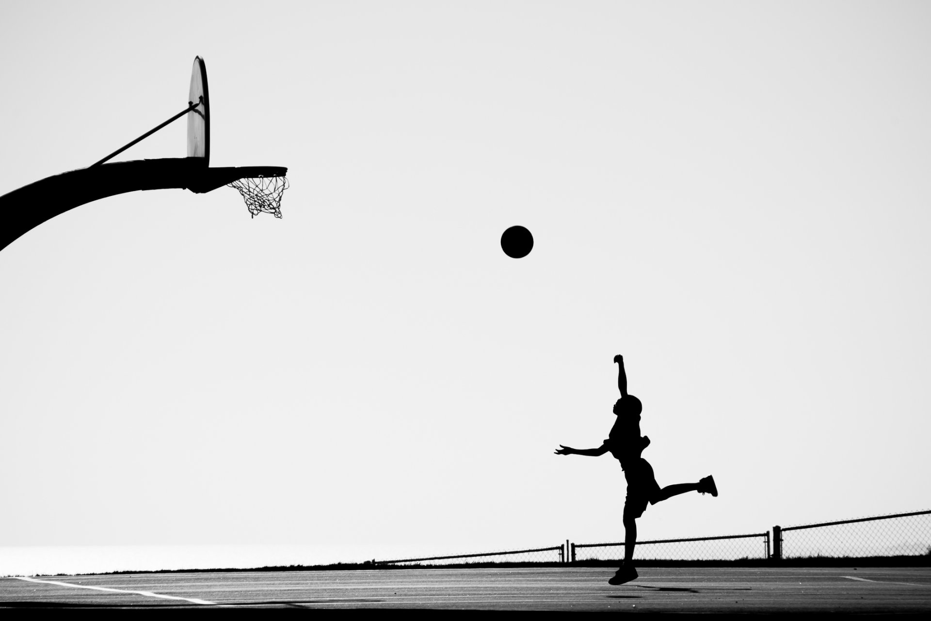 Silhouette d'une jeune fille jetant une balle dans l'anneau