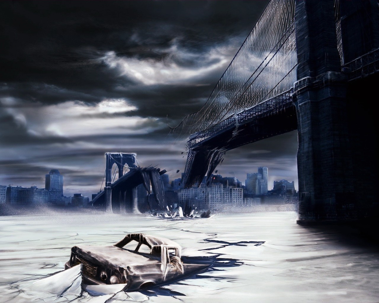 Aube sur les décombres dans un monde post-apocalyptiqueAube sur les décombres dans un monde post-apocalyptique