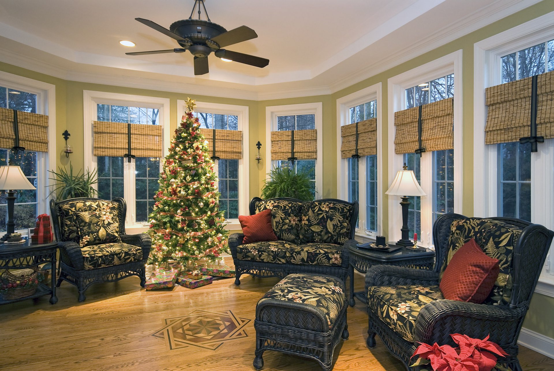 Nouvel an intérieur dans la chambre avec des meubles rembourrésNouvel an intérieur dans la chambre avec des meubles rembourrés