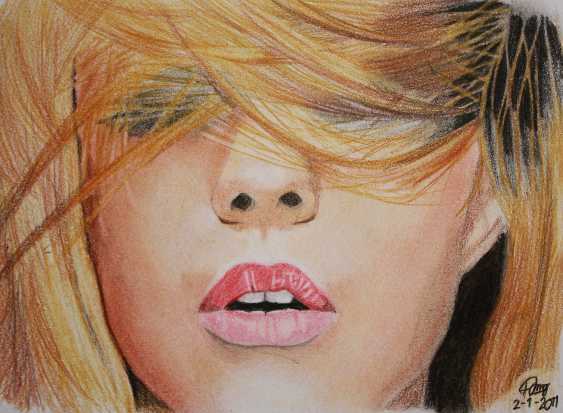 Portrait peint d'une jeune fille avec les yeux qui sont fermés par les cheveuxPortrait peint d'une jeune fille avec les yeux qui sont fermés par les cheveux