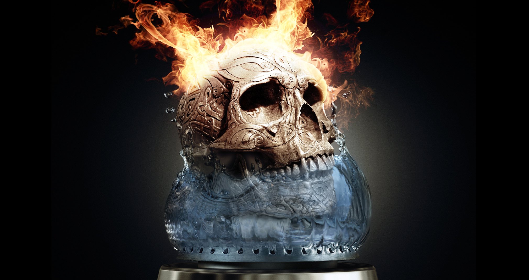 Crâne brûlant et noyé dans l'eau