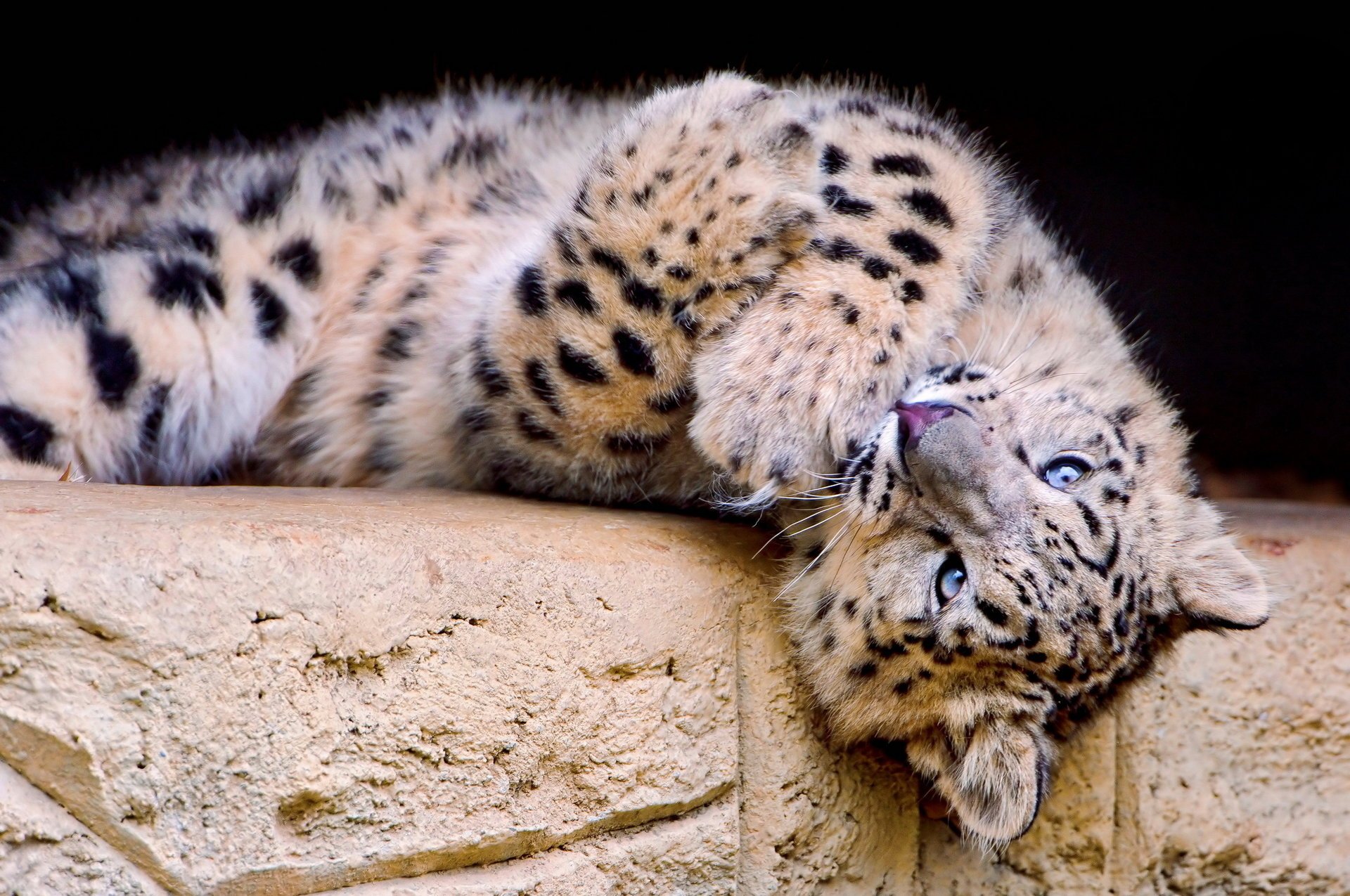 Léopard des neiges est ludique à la recherche et se trouveLéopard des neiges est ludique à la recherche et se trouve