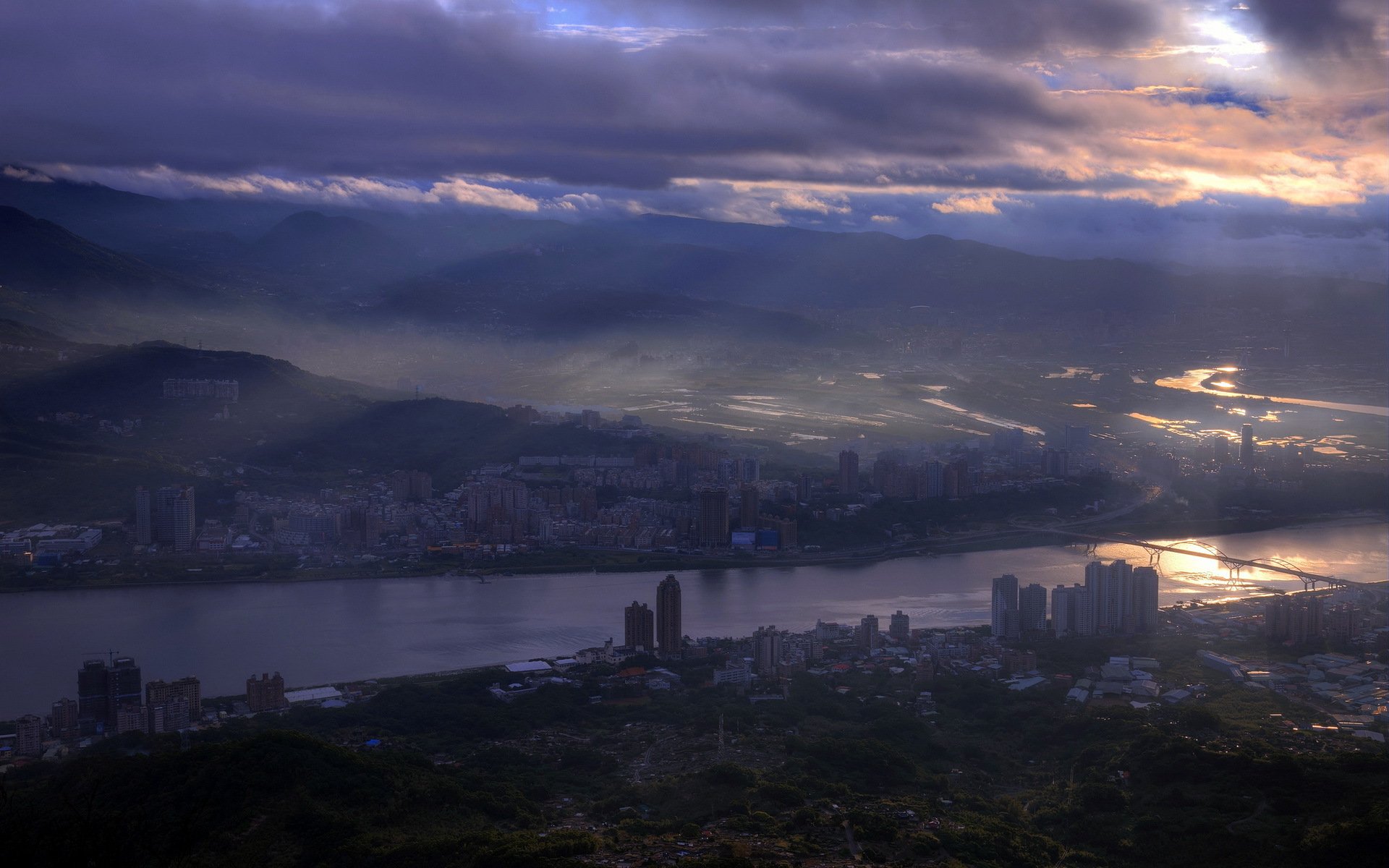 Rivière dans la ville de Taipei sur fond de ciel du soir