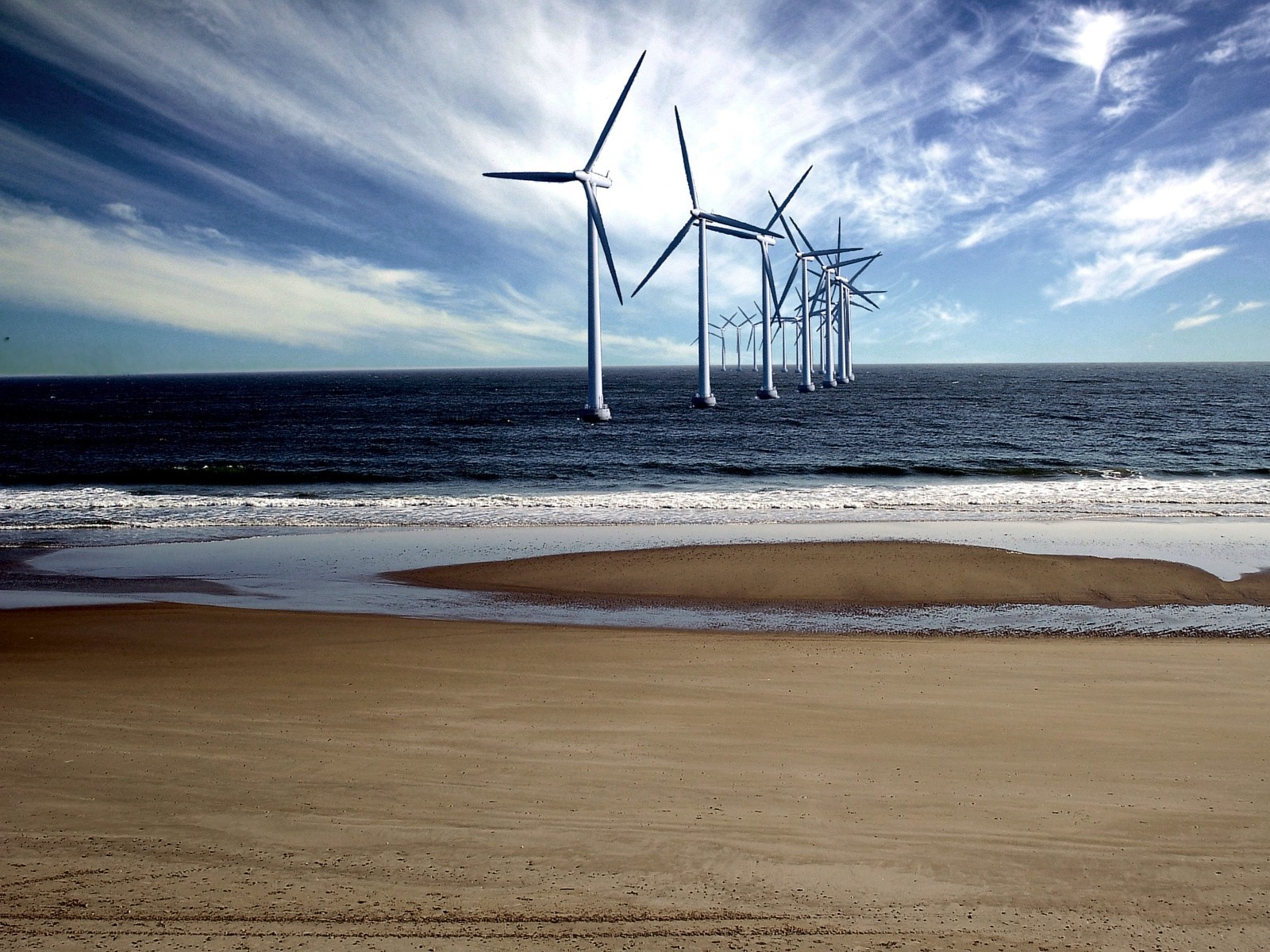 Moulin à vent marin près de la côte de sable