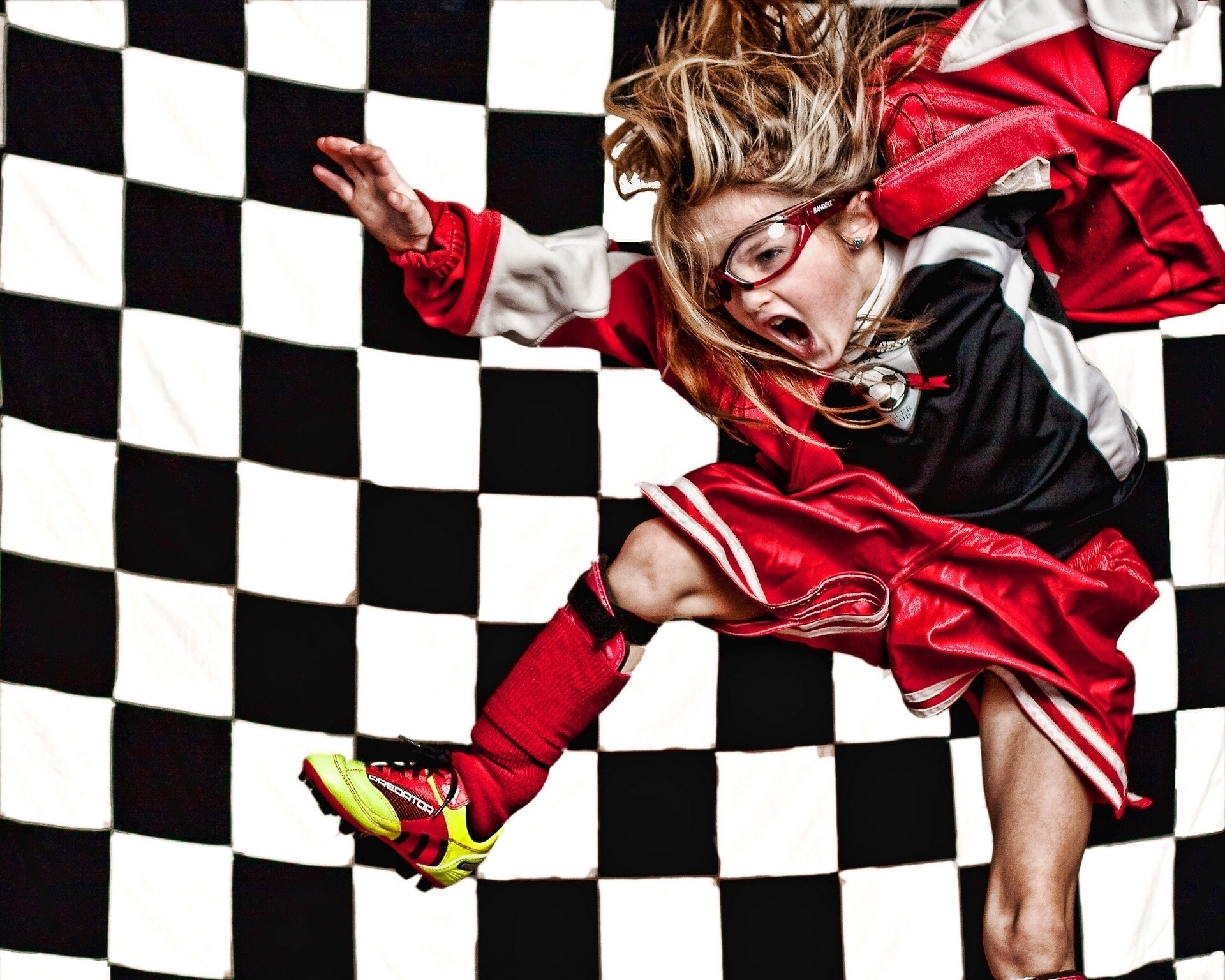 Fille dans les chaussures parmi les figures abstraitesFille dans les chaussures parmi les figures abstraites
