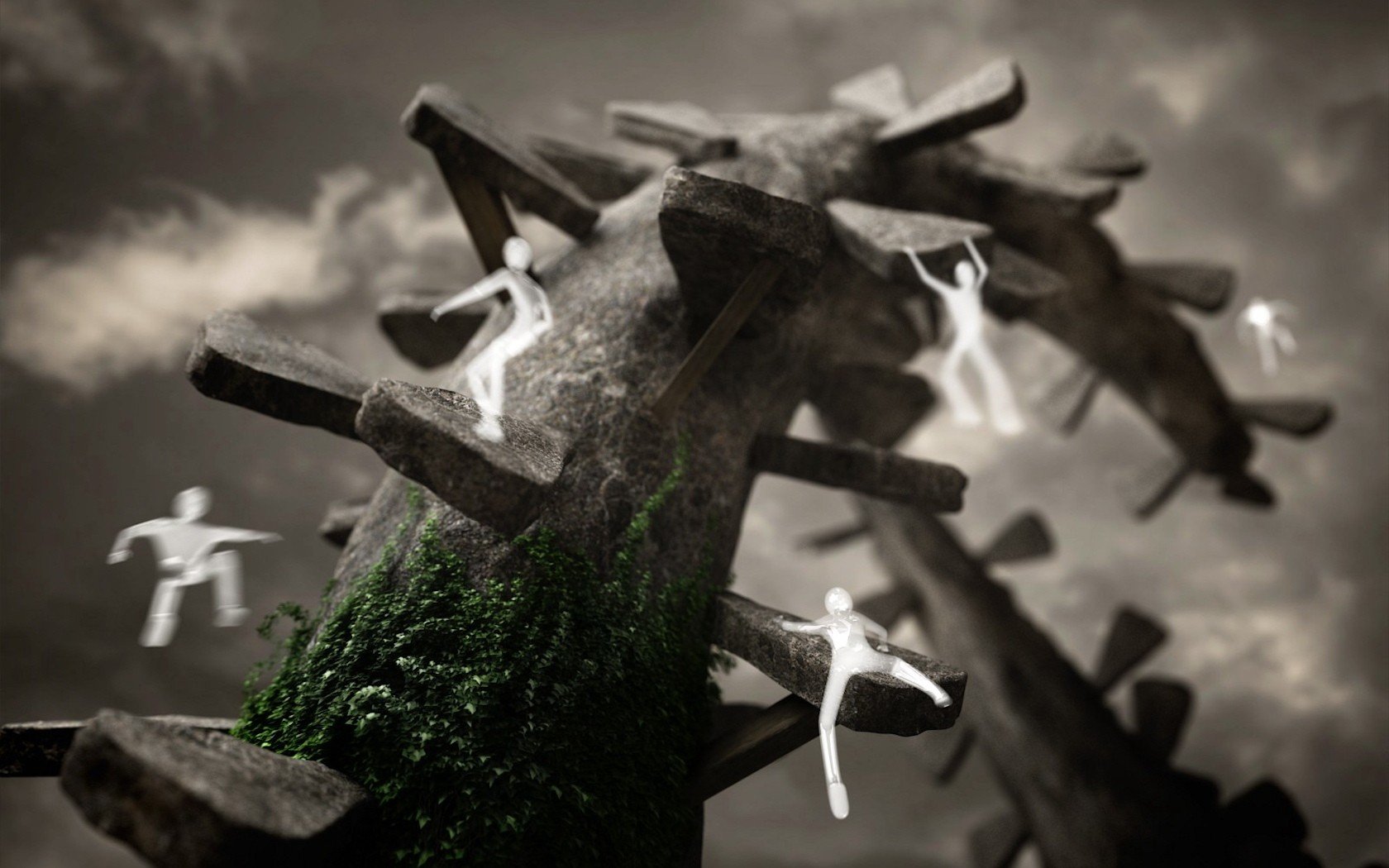 Image des hommes qui tombent d'un arbre avec des marchesImage des hommes qui tombent d'un arbre avec des Marches