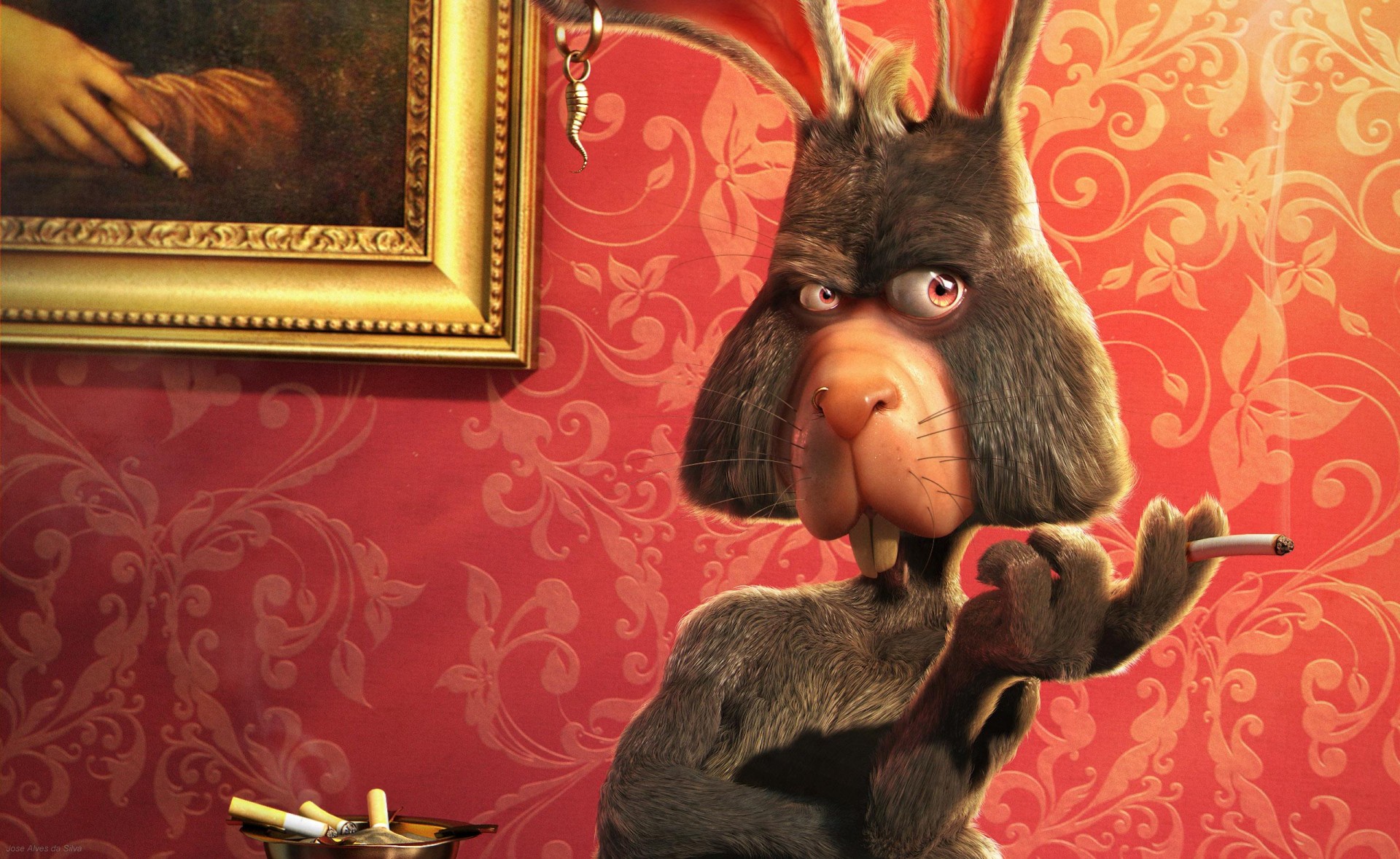 Lapin de dessin animé avec une cigarette, sur le fond de l'image