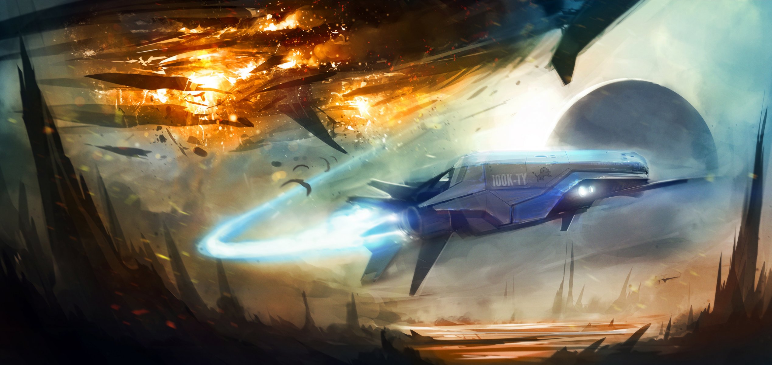 Art bataille de vaisseaux spatiaux sur fond de montagnes sombres et planètes bleuesArt bataille de vaisseaux spatiaux sur fond de montagnes sombres et planètes bleues