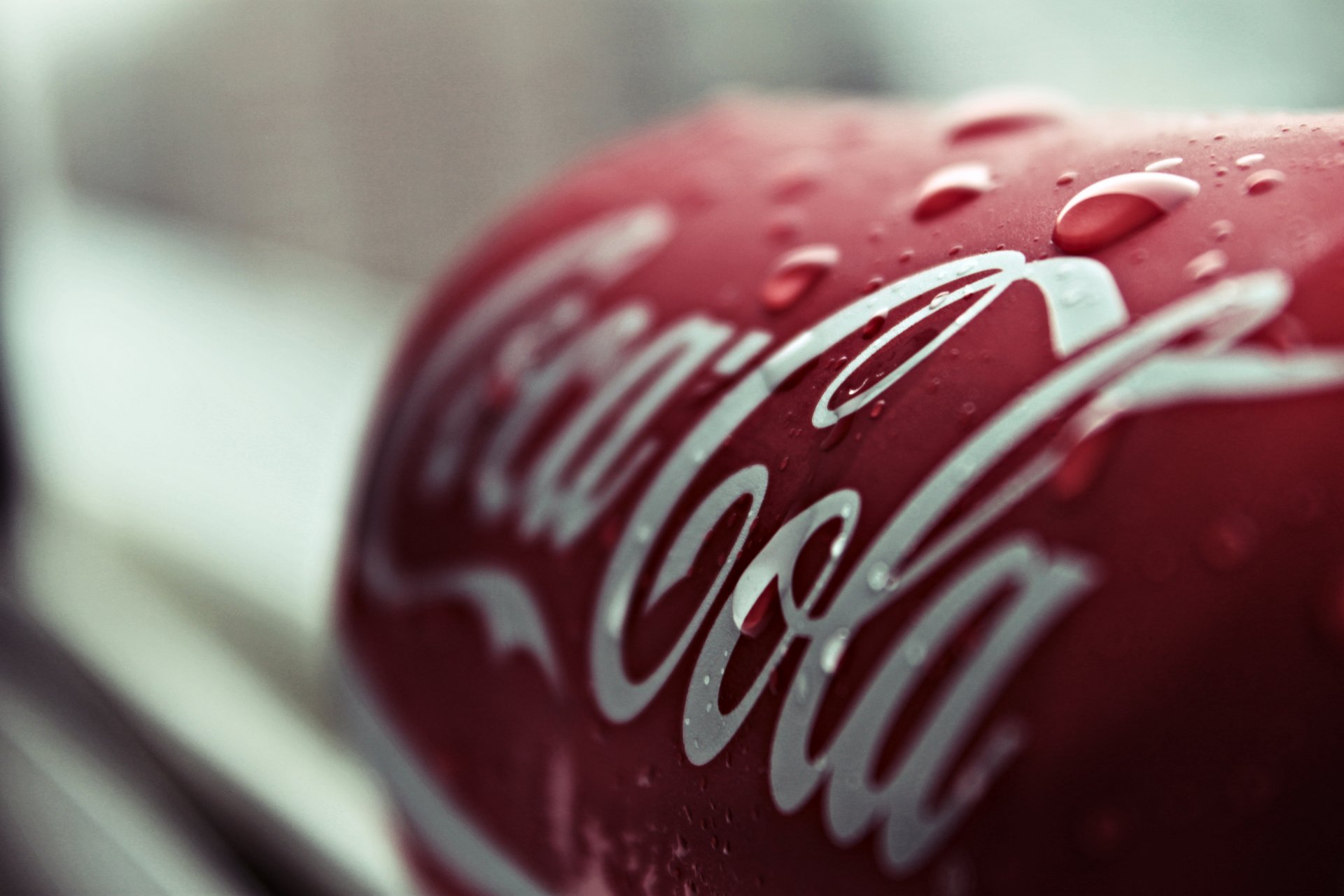 Canette réfrigérée de Coca-Cola avec des gouttes d'eau