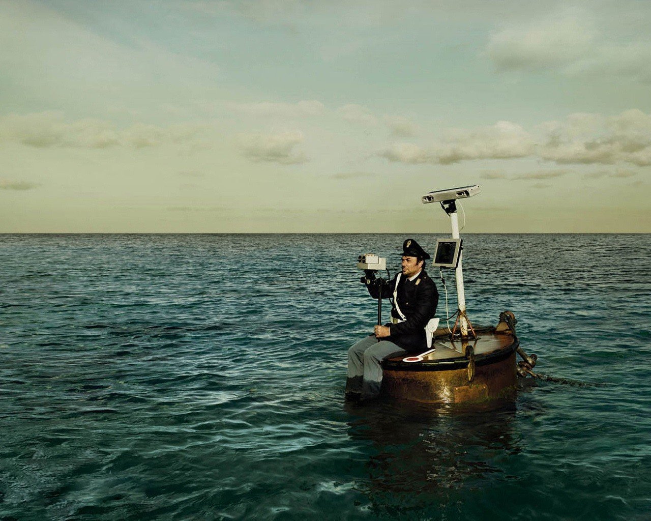 L'homme receveur de poissons en hiver, les montagnesL'homme receveur de poissons en hiver, les montagnes