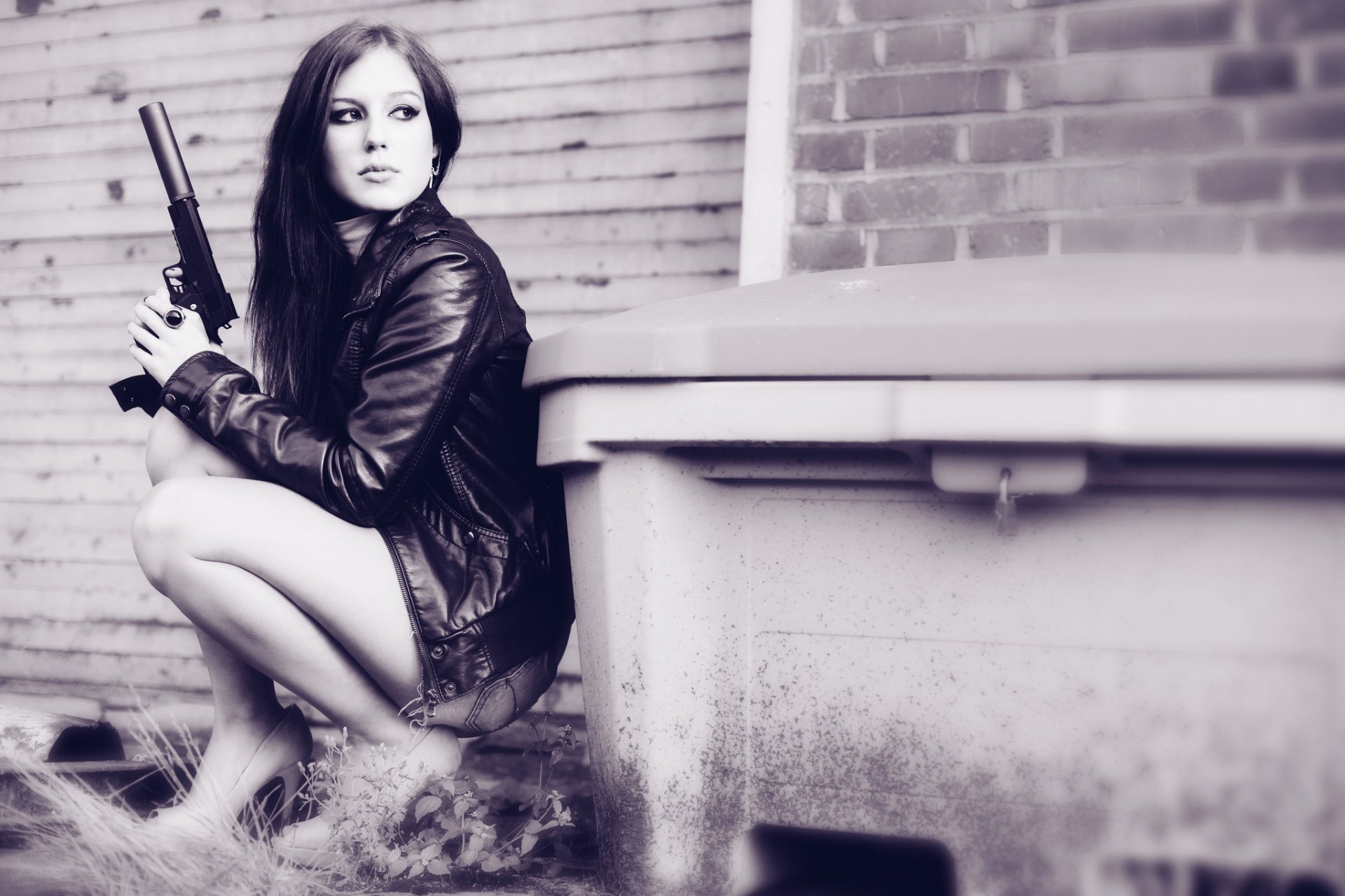 Спецагент avec un pistolet agit sur le fond de l'explosionСпецагент avec un pistolet agit sur le fond de l'explosion