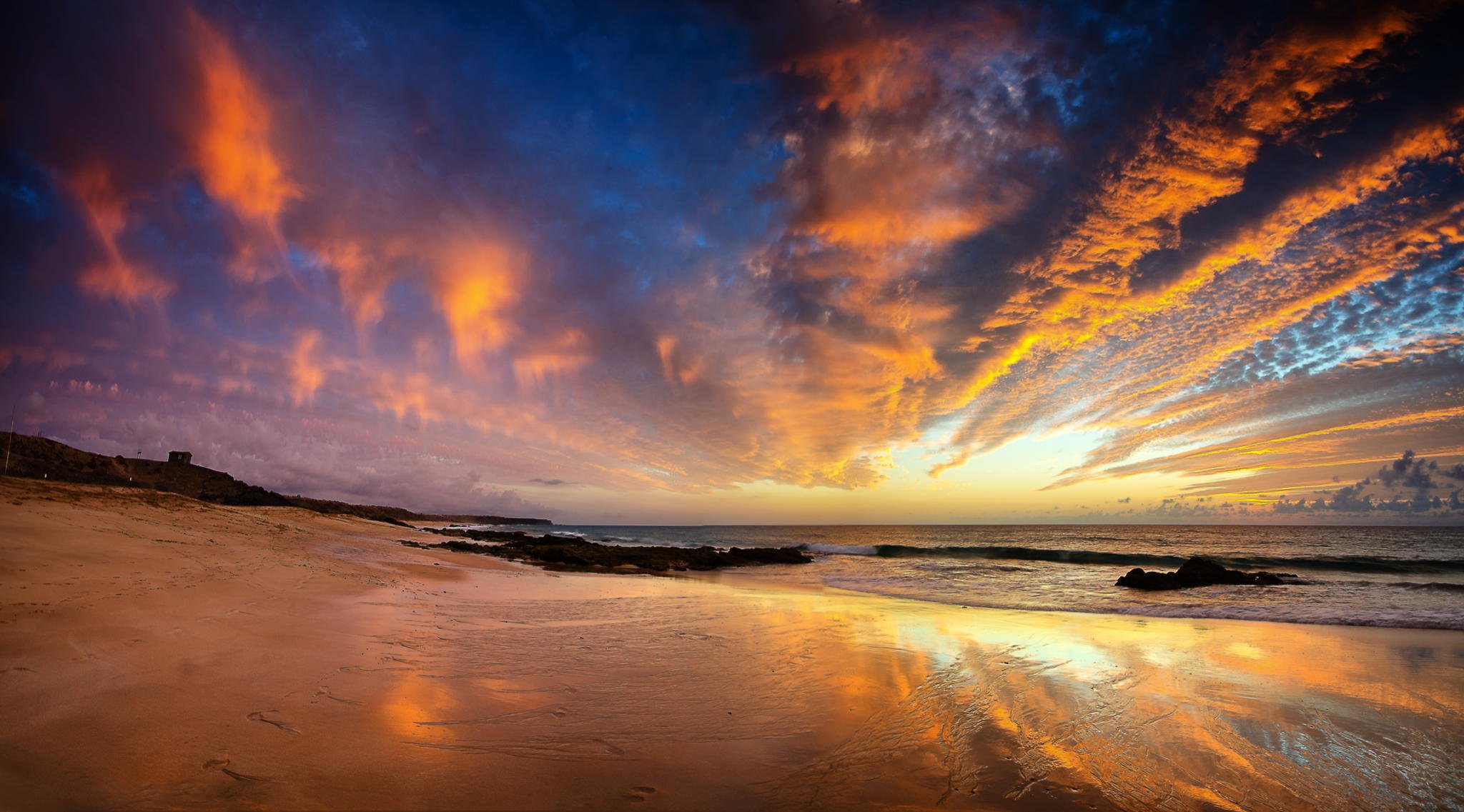 Coucher de soleil sur la plage de Barrica en Espagne