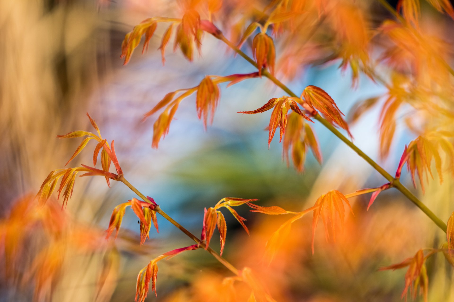 Inflorescences de verdure sur fond bleu