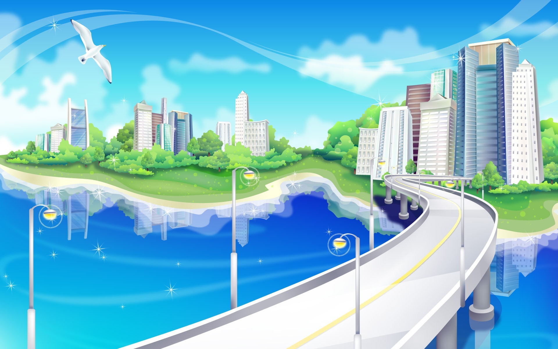 Lanternes sur le pont se reflètent dans l'eau sur fond de ciel lilas