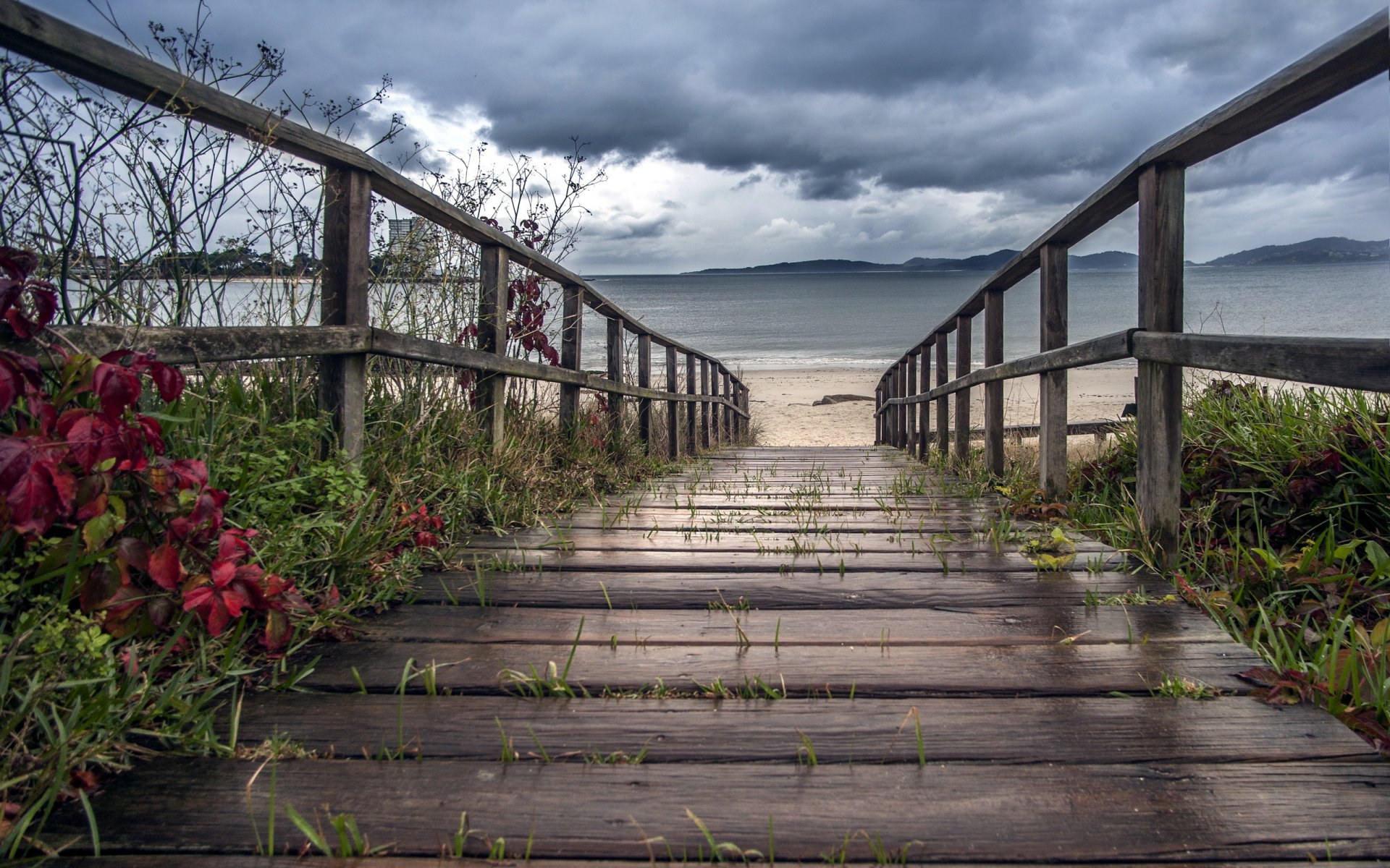 Vue de la route sur le pont et le ciel avec des nuagesVue de la route sur le pont et le ciel avec des nuages