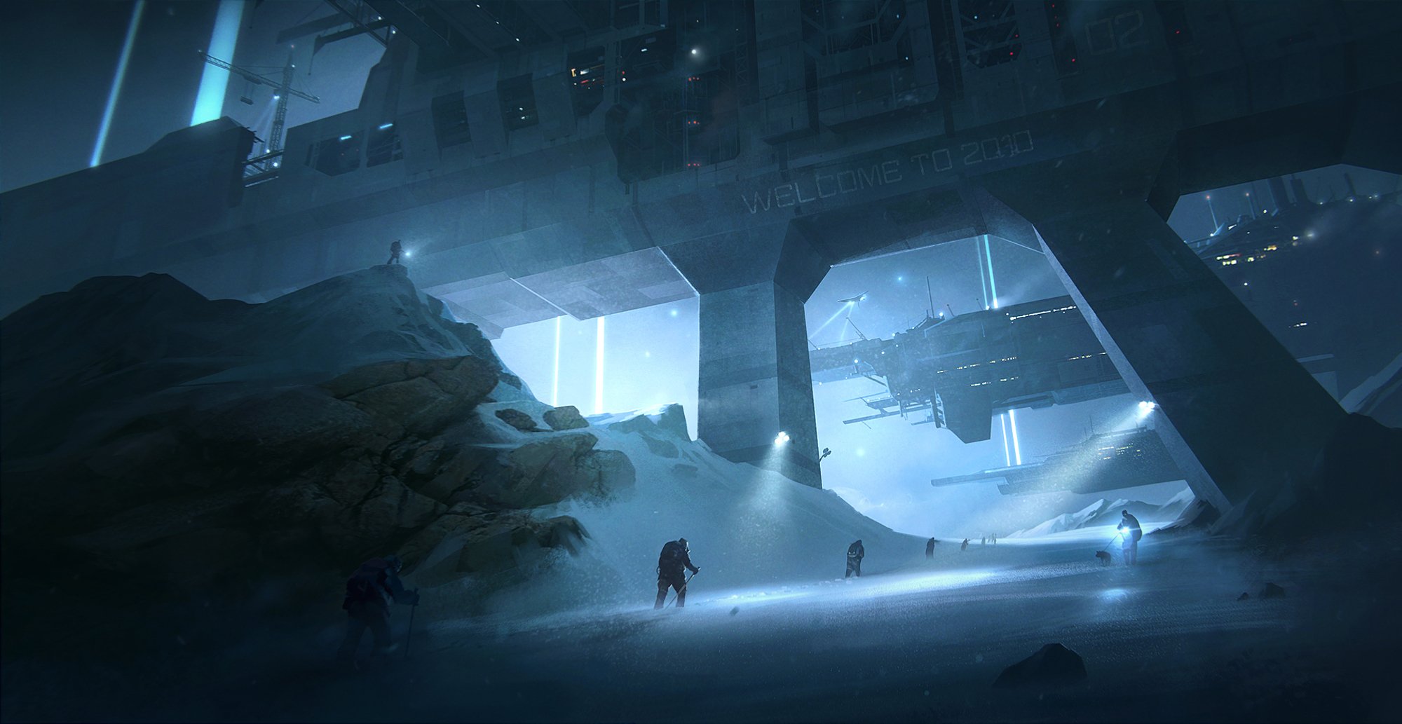 Les gens vont dans une tempête de neige au port au navireLes gens vont dans une tempête de neige au port au navire