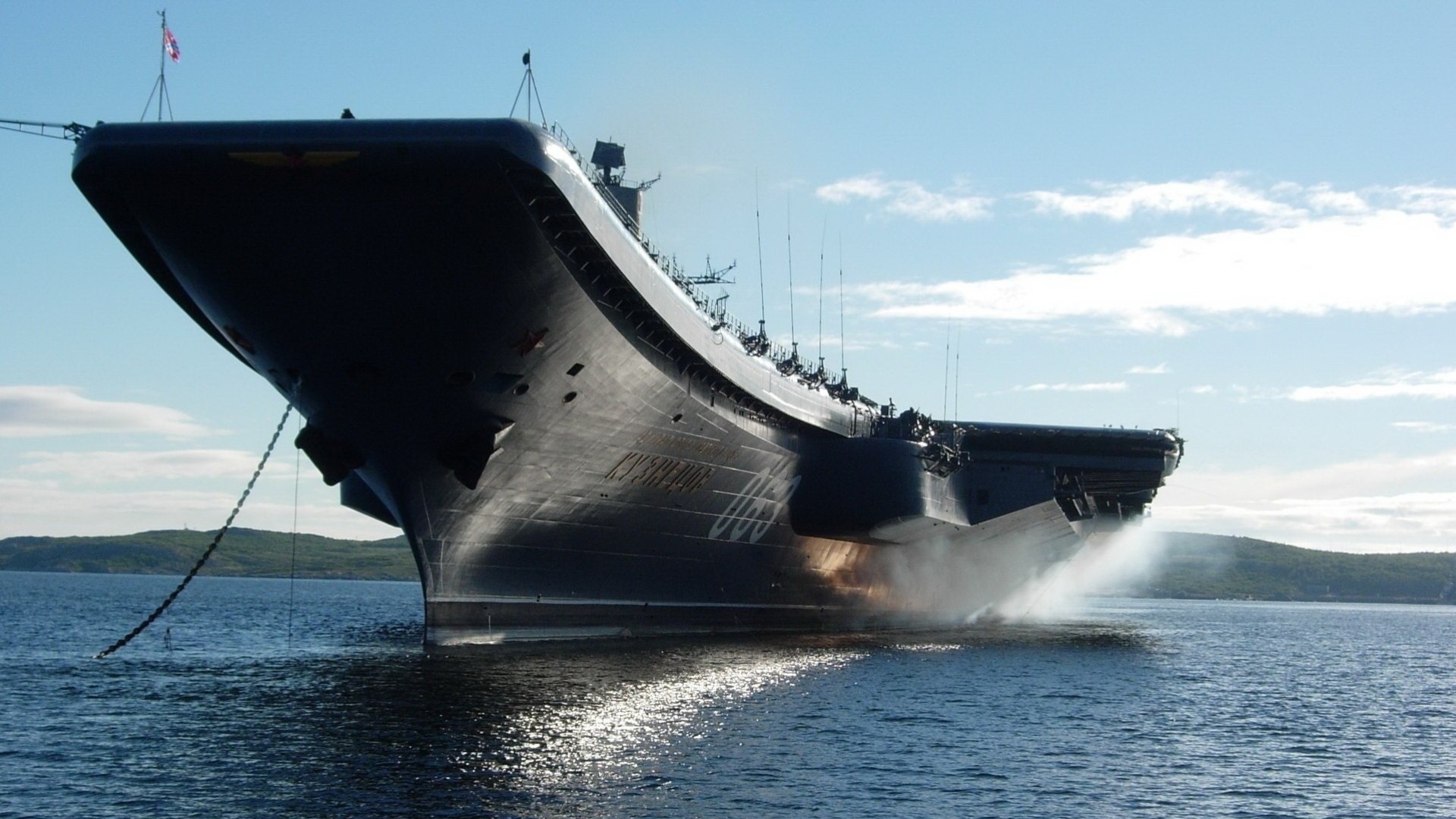 L'avion atterrit sur le pont d'un porte-avions en mer