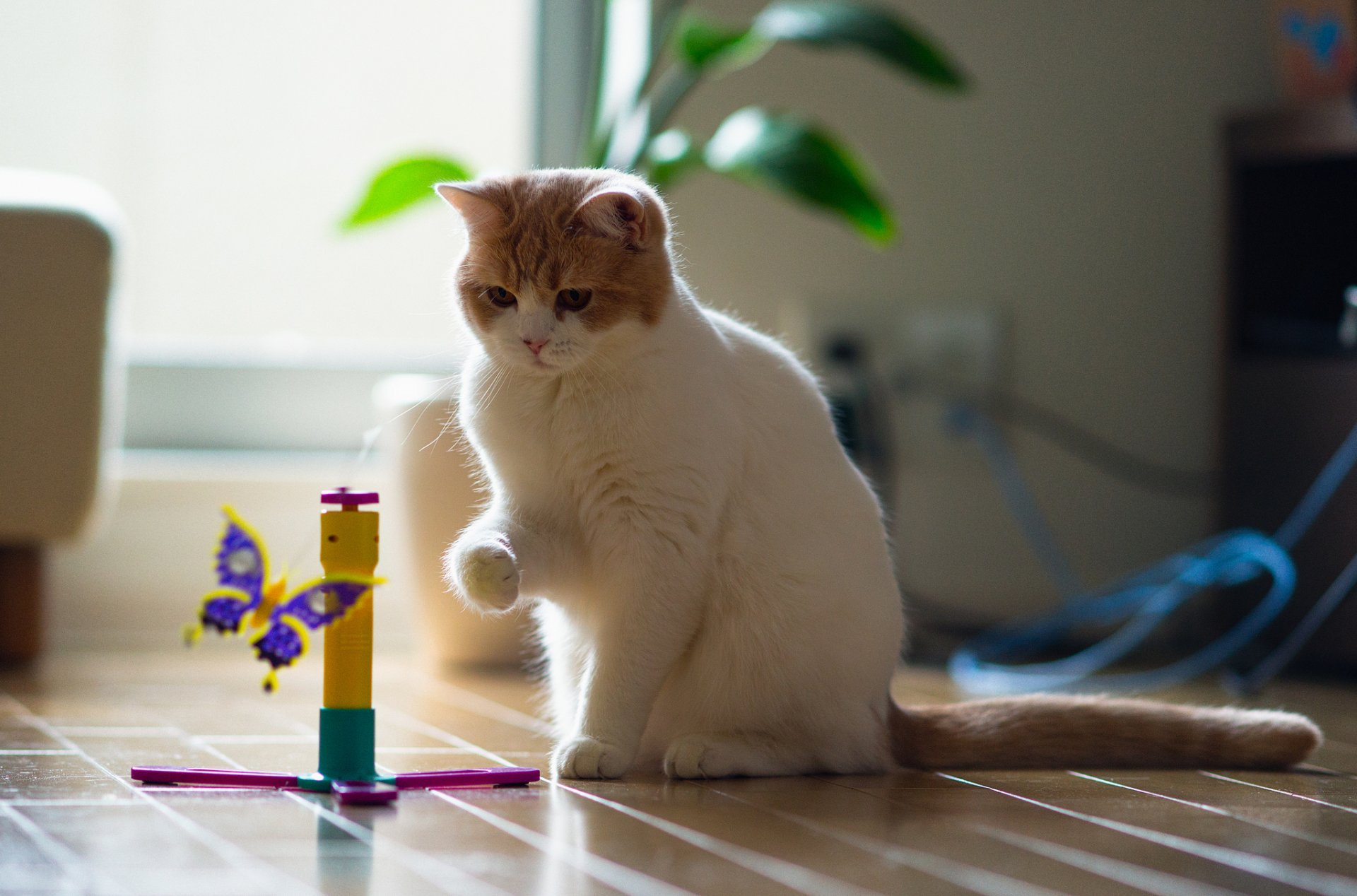 Chat jouant avec un beau papillon