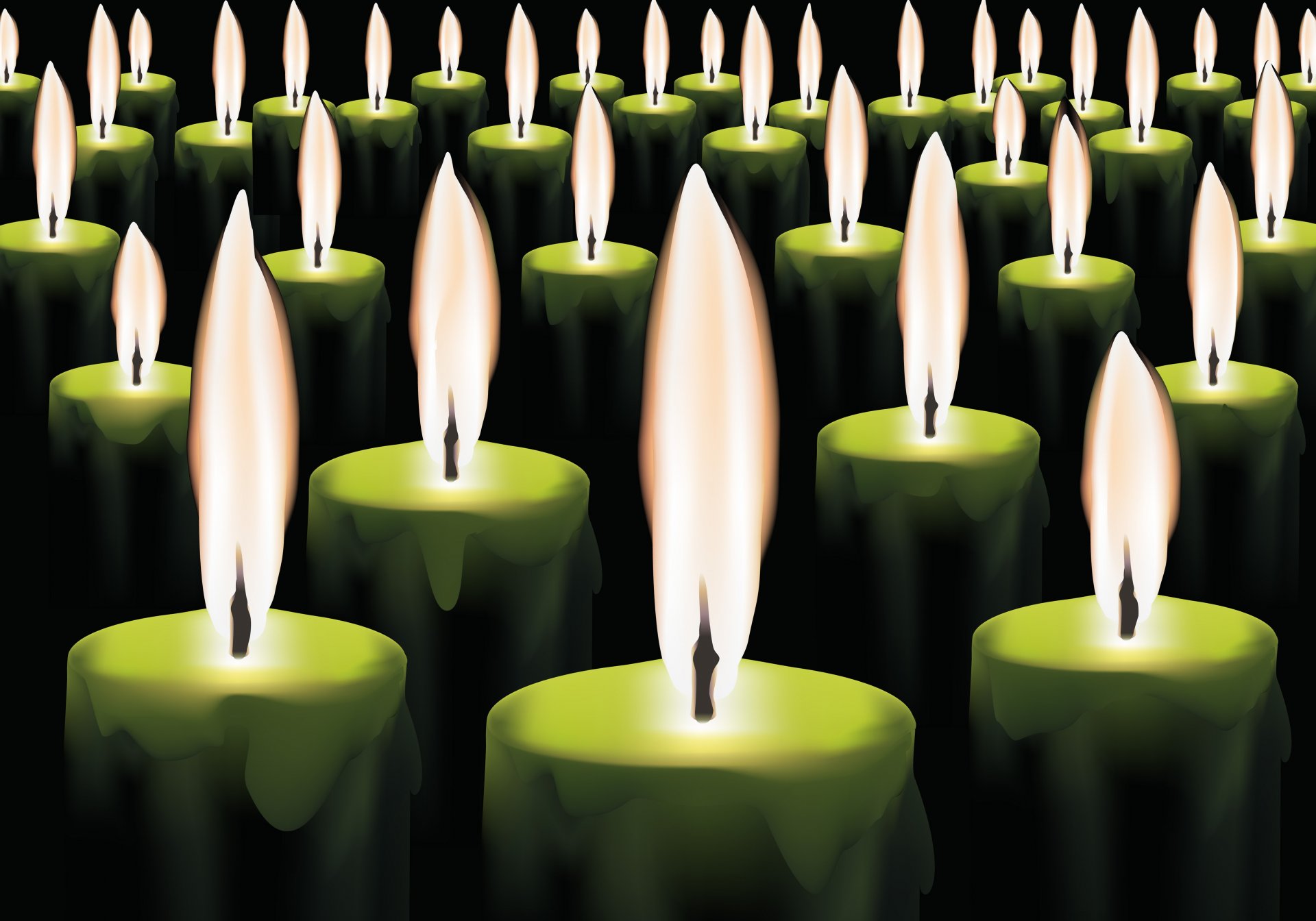 Beaucoup de bougies vertes brûlantes