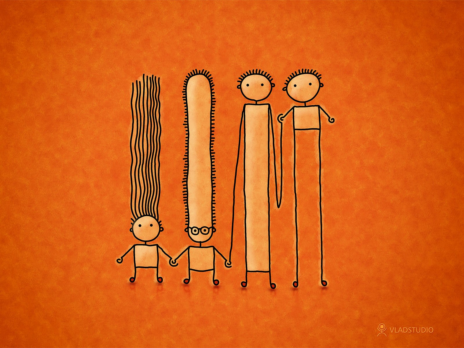 Dessin schématique d'une famille de quatre personnesDessin schématique d'une famille de quatre personnes