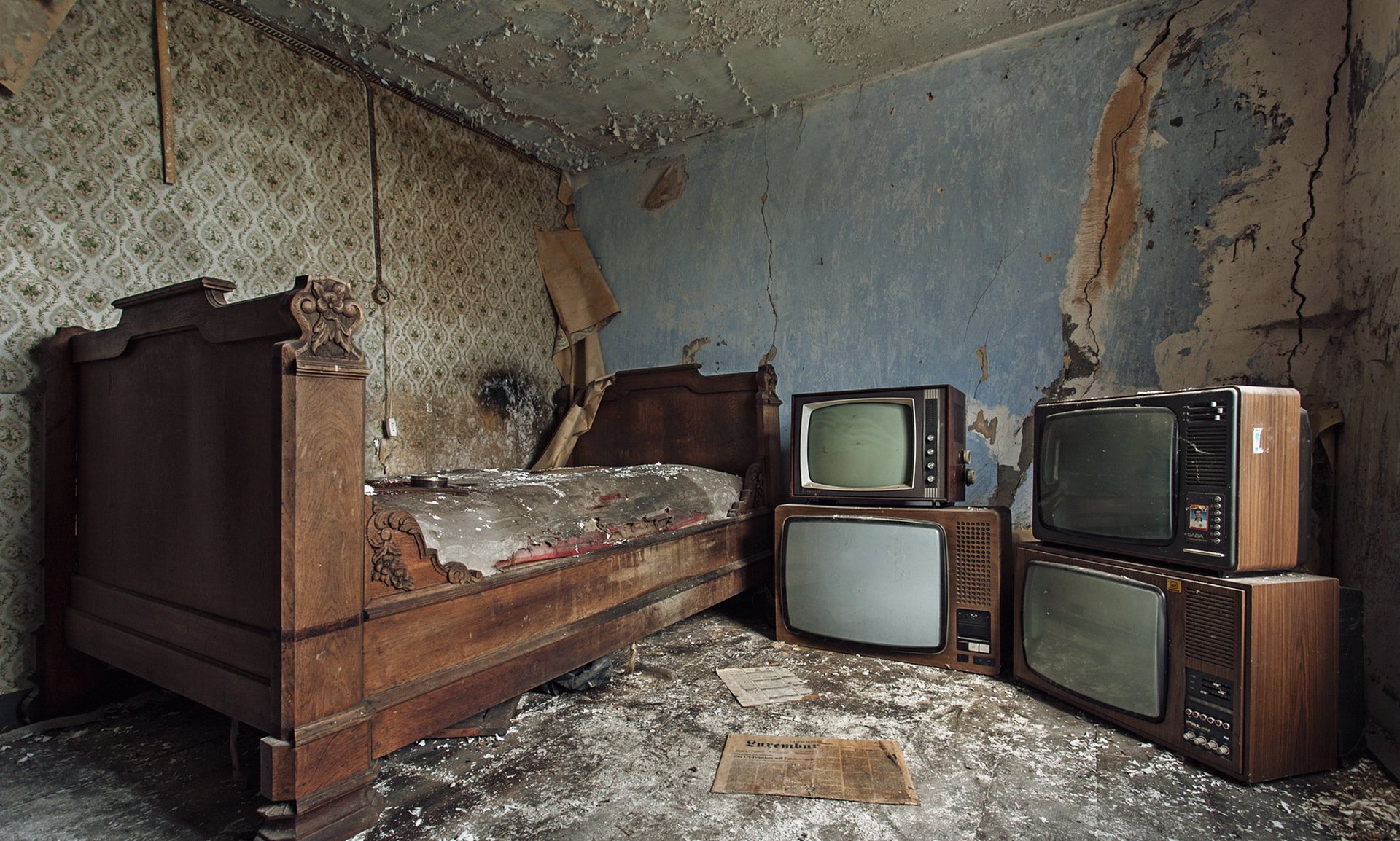 Il y a quatre téléviseurs derrière lesquels obom recueilli