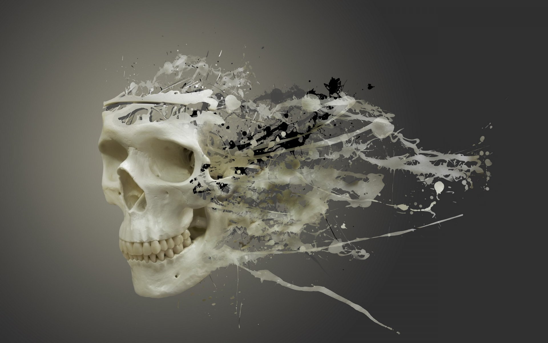 Le crâne, se roulant dans les divorces sur un fond grisLe crâne, se roulant dans les divorces sur un fond gris