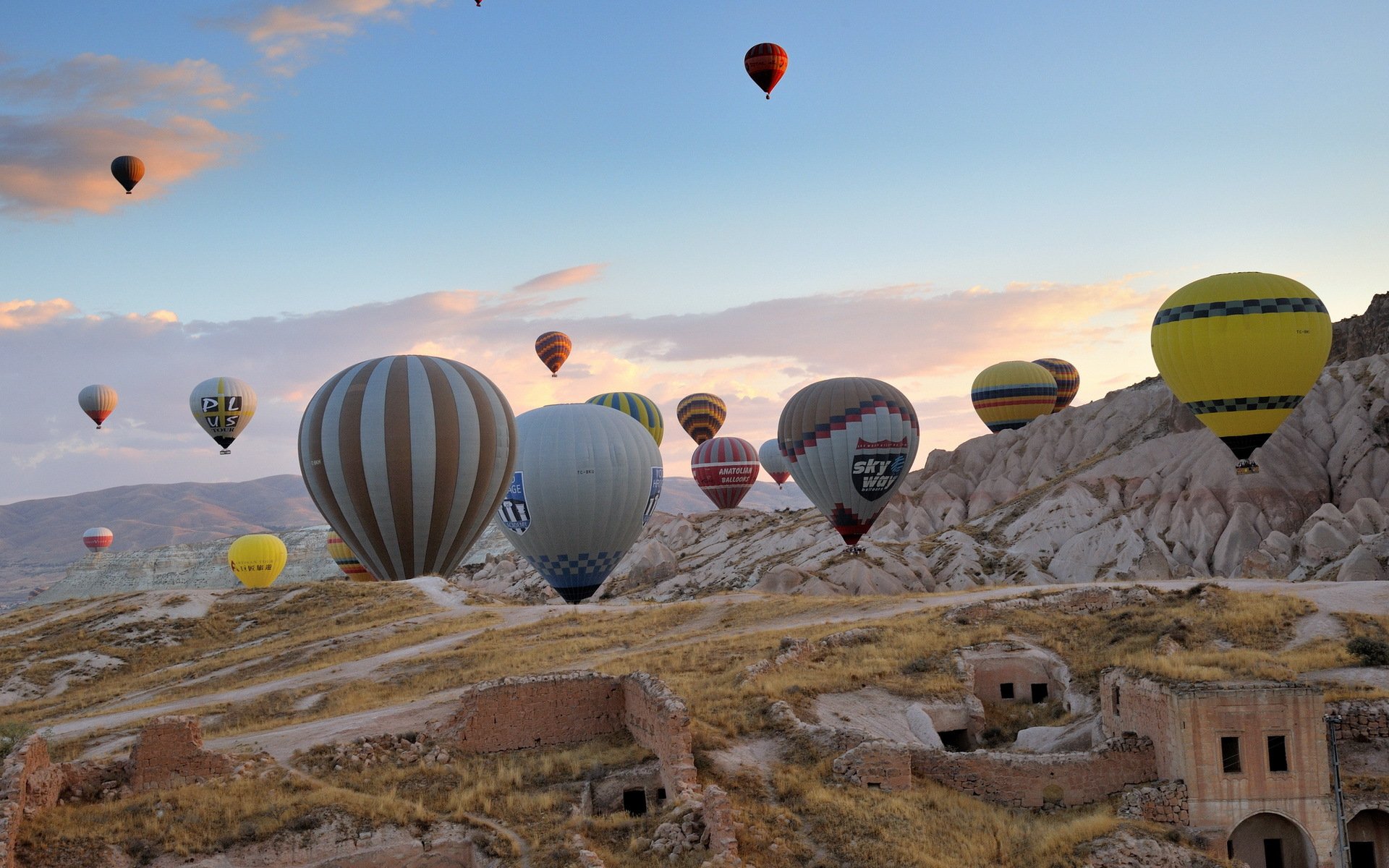 Quelque part dans les montagnes, il y a un ciel bleu parsemé de ballons