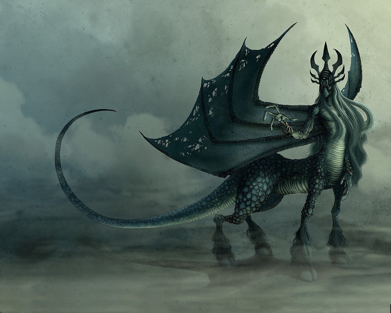 Art fantastique avec un monstre avec des ailes et une queue