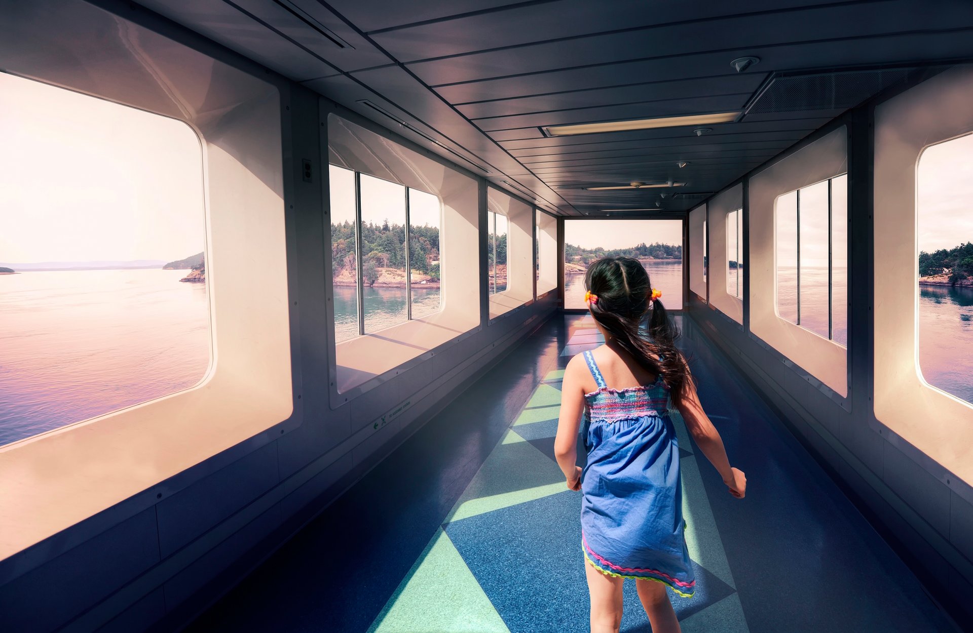 Fille avec deux queues de cheval et dans une robe bleue
